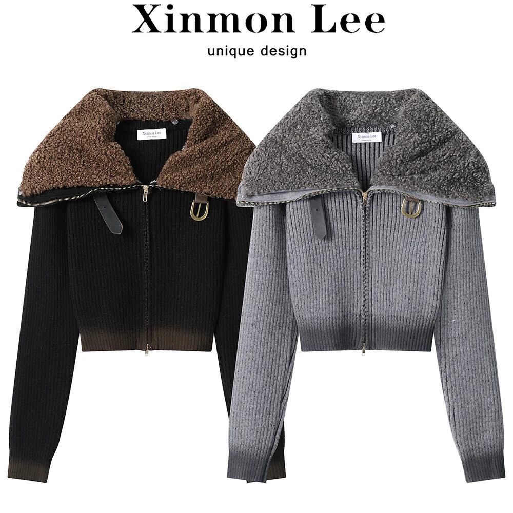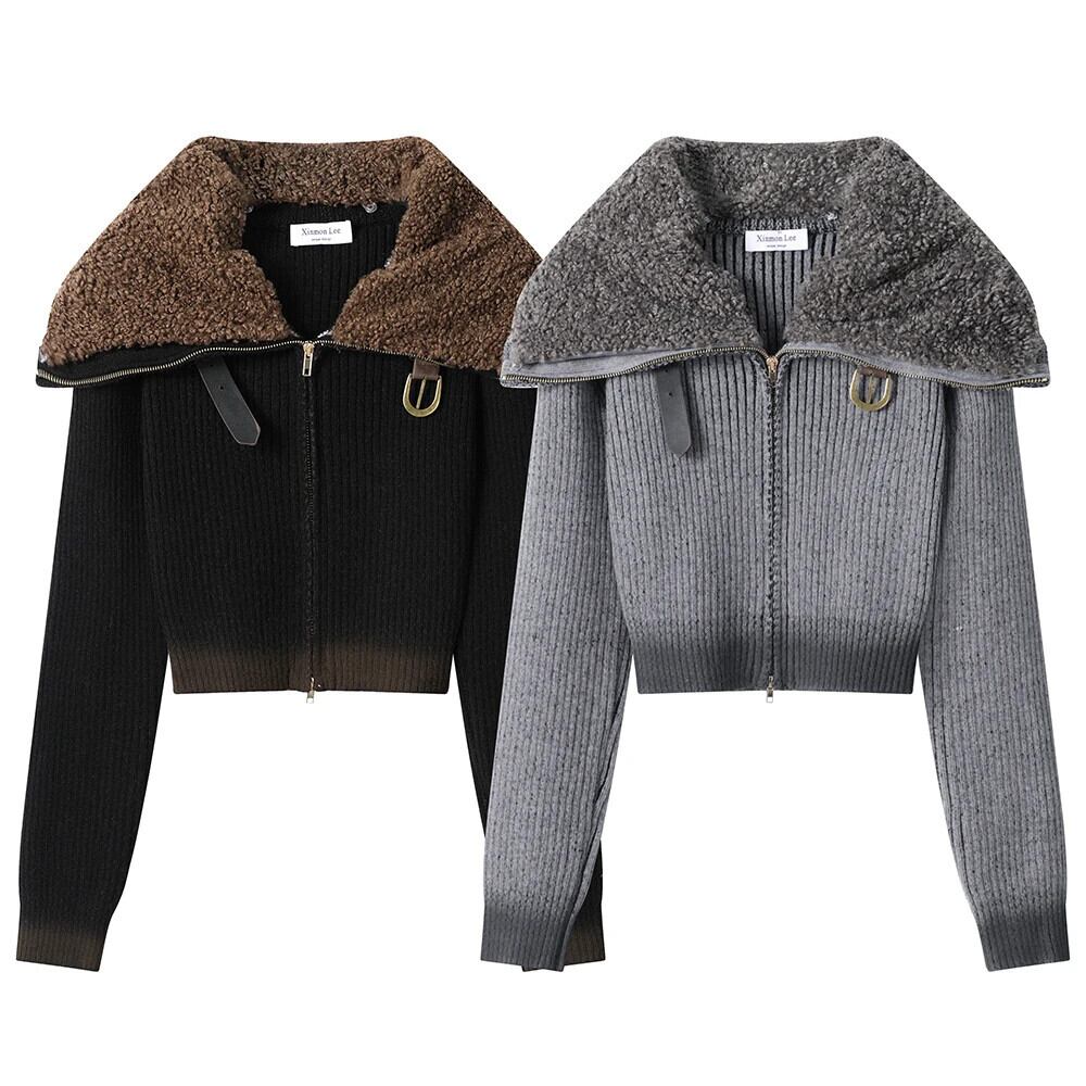 甘いホットガールレトロラムファーラペルショートニットカーディガン冬スリムフィットセータージャケット 大人ガーリー スウィート キュート カジュアル ウィンター 冬物