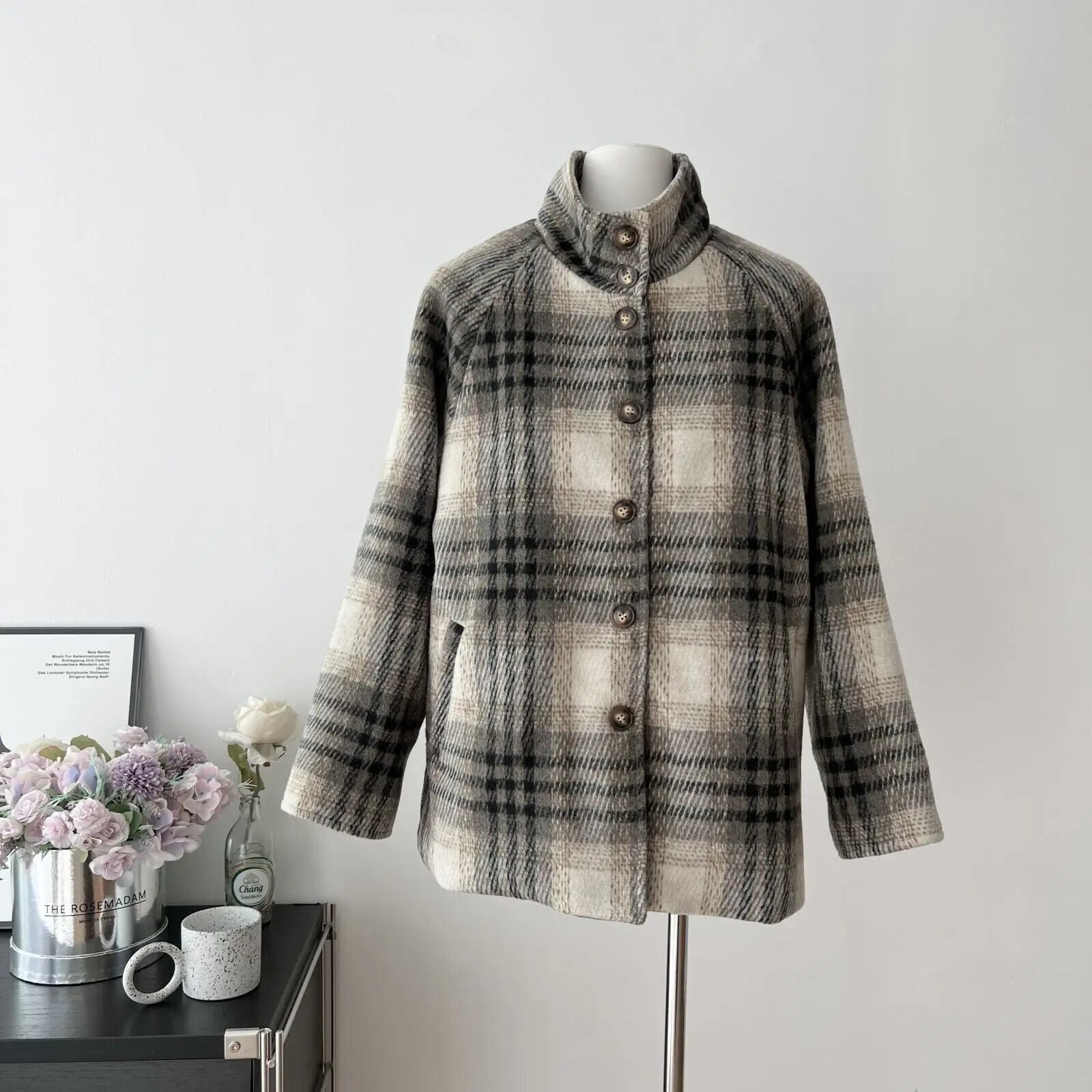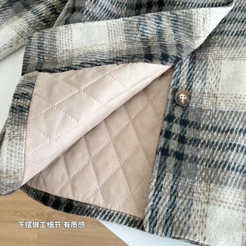 甘いホットガールチェック柄ウールコート秋と冬両面ウールシングルブレストスタンドカラーコート 大人ガーリー スウィート キュート カジュアル オータム 秋物 ウィンター 冬物