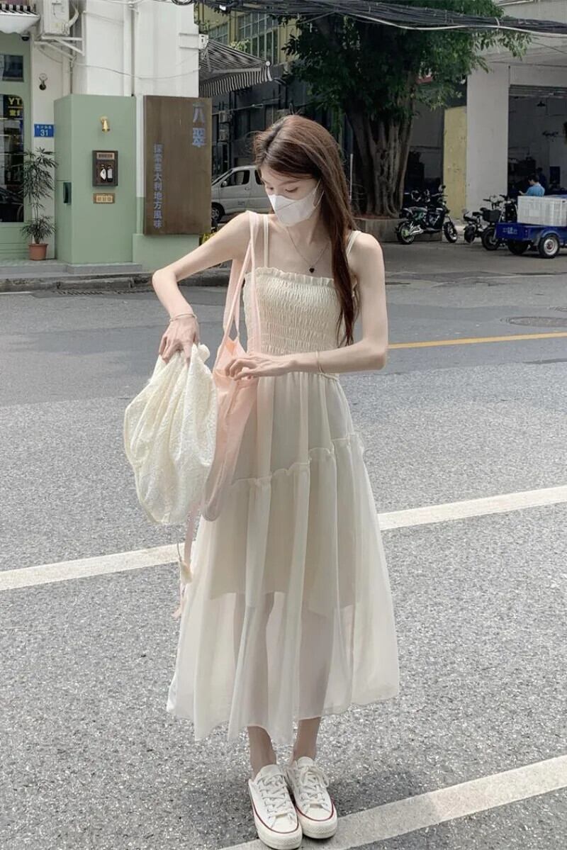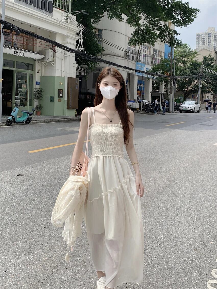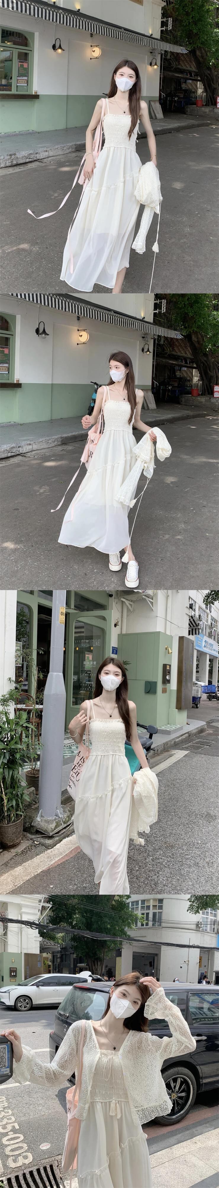 スウィートガールホリデースタイルストラップドレス春/夏食用木菌不規則フィット A ライン白ドレス ホワイト 大人ガーリー キュート カジュアル スプリング 春物 サマー 夏物 Aライン