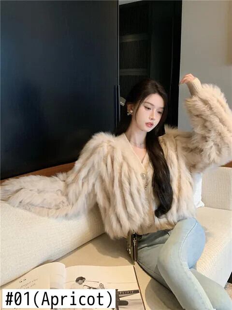 甘い女子肥厚ショートファーコート秋と冬 V ネックルーズ長袖豪華セーター ロング 大人ガーリー スウィート キュート カジュアル オータム 秋物 ウィンター 冬物 Vネック