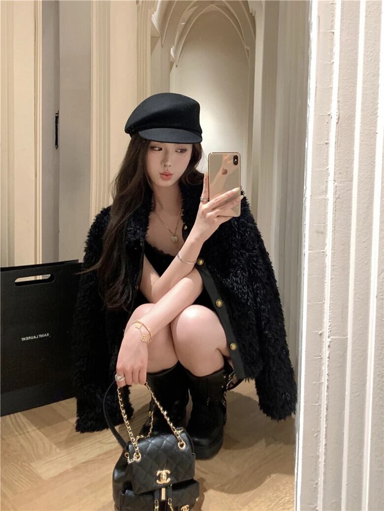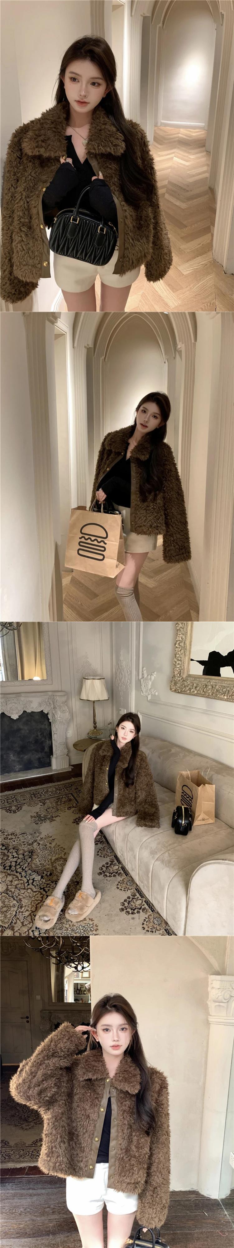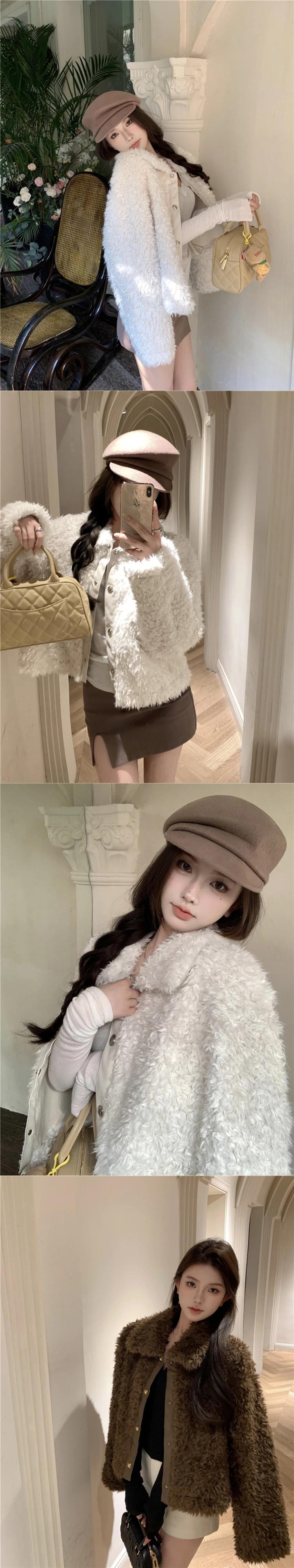 甘いホットガールレトロラムウールジャケット冬シングルブレストターンダウン襟ルーズショートコート 大人ガーリー スウィート キュート カジュアル ウィンター 冬物