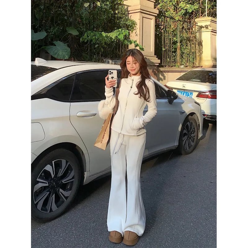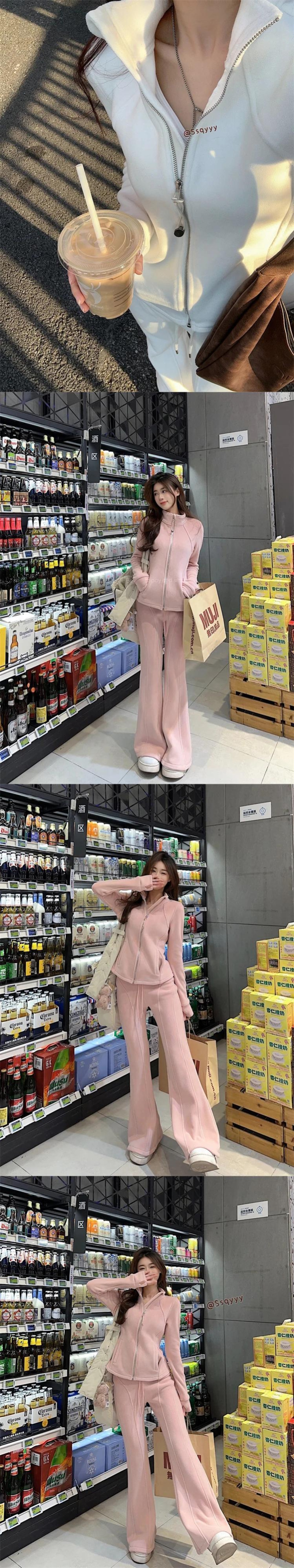 Sweet Girl スーツ レディース 冬 スタンドカラー トレーナー 巾着 フレアパンツ 2点セット 大人ガーリー スウィート キュート カジュアル ウィンター 冬物