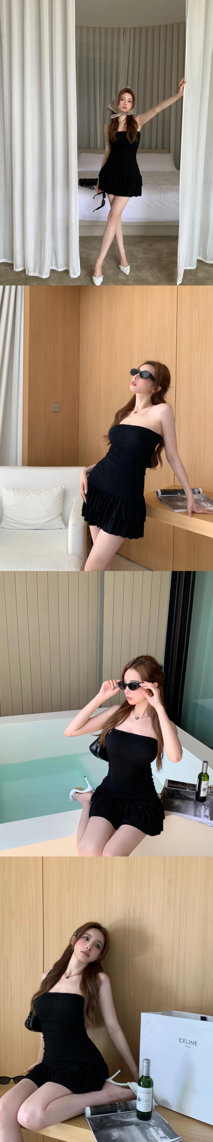 甘いホットガール純粋セクシーピンクドレス秋/春タイトフィットストラップレス A ラインショートドレス Y2K 大人ガーリー スウィート キュート カジュアル スプリング 春物 オータム 秋物 Aライン ピュア