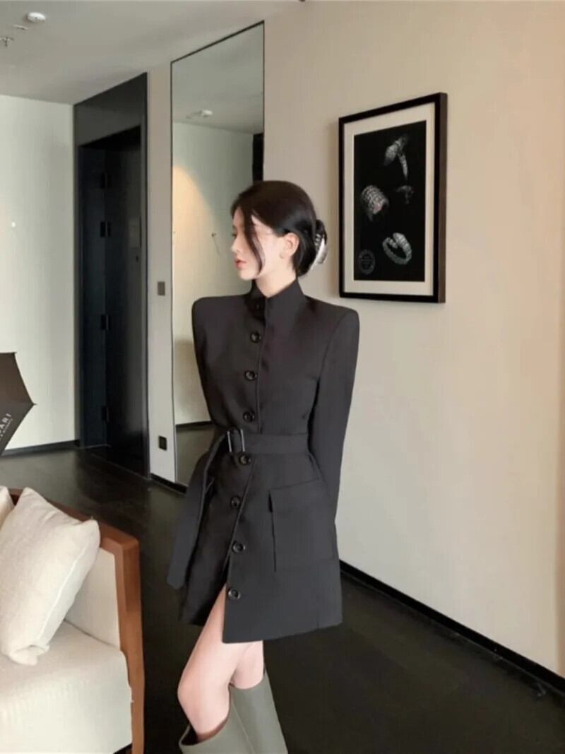 甘いホットガールスタンドカラーウールコート春ミッドレングス長袖ベルトスリムフィットウールコート ロング 大人ガーリー スウィート キュート カジュアル スプリング 春物 ハーネス