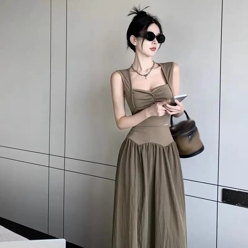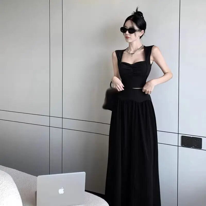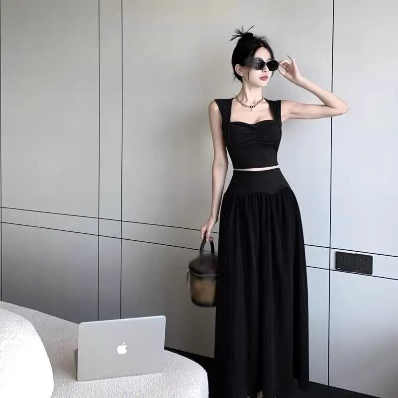 甘いホットガールスーツ夏ソリッドカラースクエアカラーベストトップウエスト A ラインスカート 2 点セット 大人ガーリー スウィート キュート カジュアル サマー 夏物 Aライン スクウェア