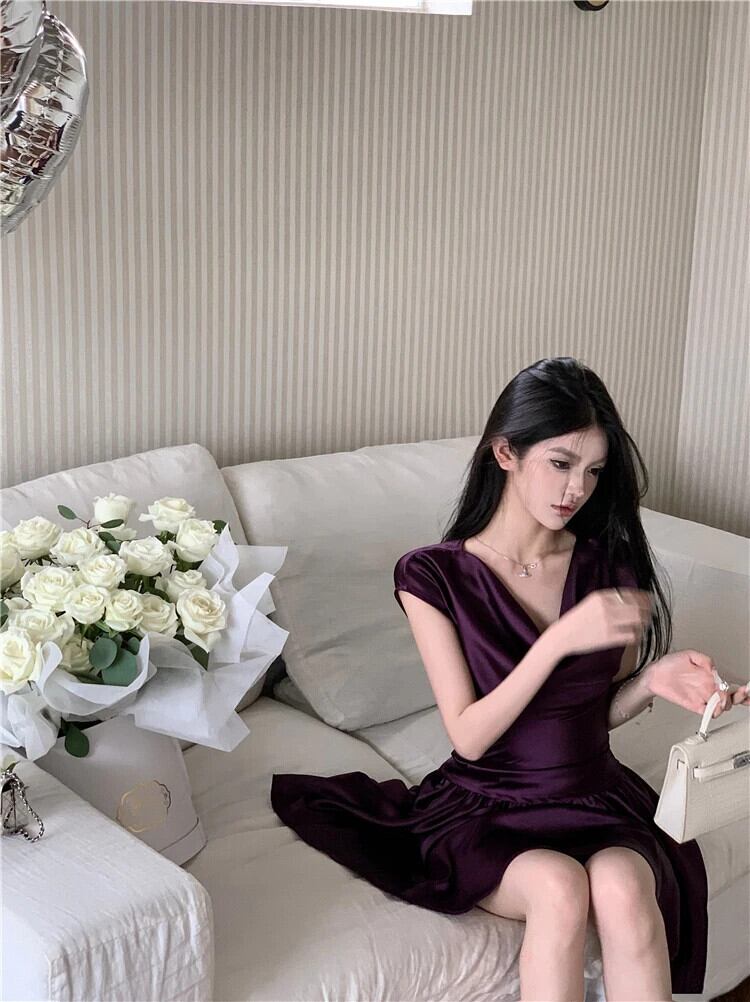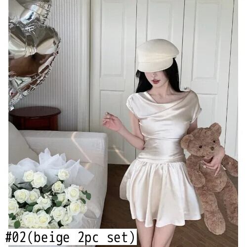 甘いホットガールスーツ春無地サテン半袖トップウエスト A ラインスカート 2 点セット 大人ガーリー スウィート キュート カジュアル スプリング 春物 Aライン ソリッドカラー