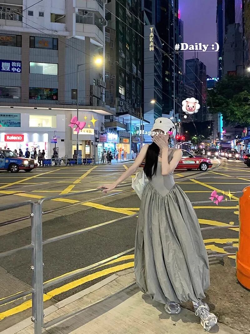 甘いホットガールノースリーブドレス春セクシー背中開いたふわふわ A ラインスリムフィットベストロングドレス 大人ガーリー スウィート キュート カジュアル スプリング 春物 Aライン