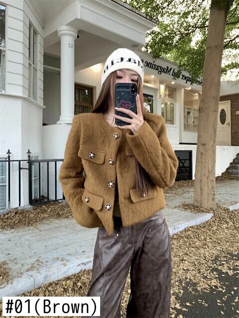 甘いホットガールシングルブレストウールジャケット春 O ネック長袖ショートウールコート ロング 大人ガーリー スウィート キュート カジュアル スプリング 春物 Oネック