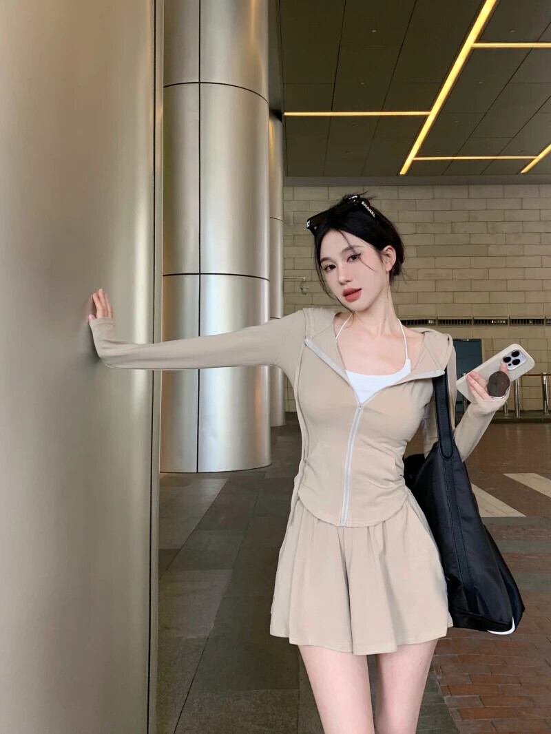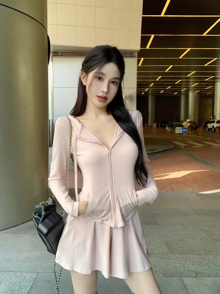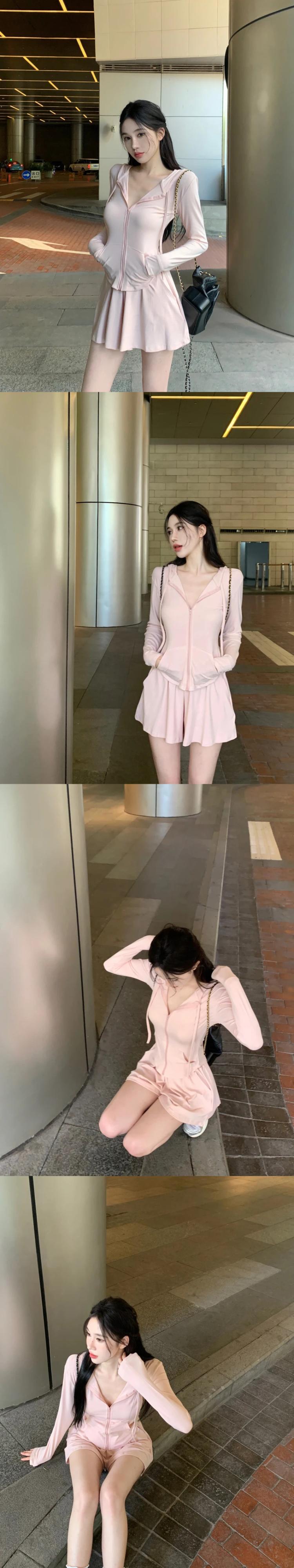 甘いホットガールスポーツスーツ春スリムフィット長袖カーディガンジャケットショーツ 2 点セット ロング 大人ガーリー スウィート キュート カジュアル スプリング 春物 ブルマー