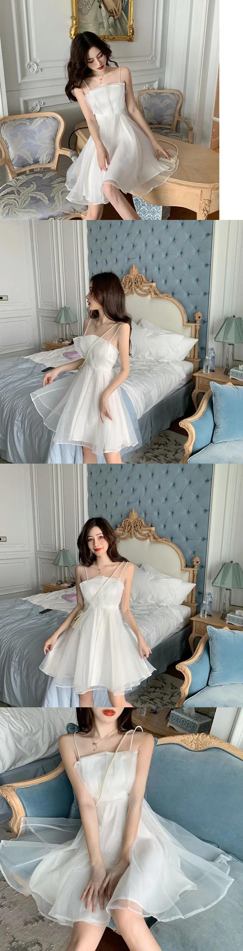 フレンチスイートガールフェアリースタイルバブルバブルドレス春セクシーストラップAラインショートスリムフィットドレス 大人ガーリー スウィート キュート カジュアル スプリング 春物