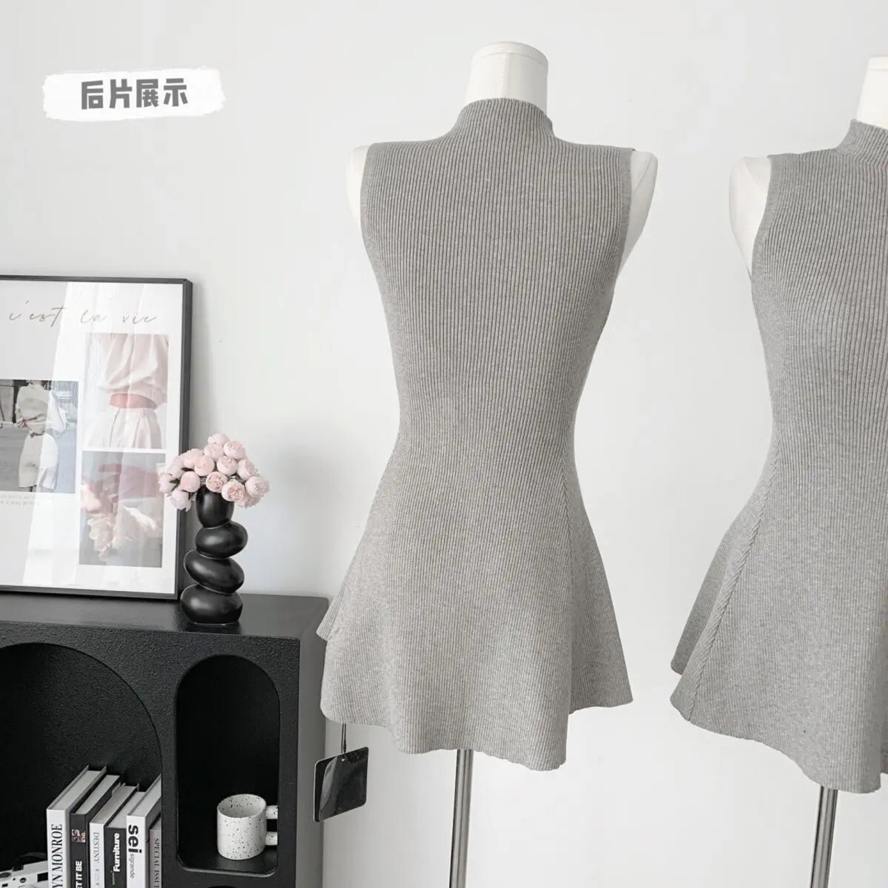 甘いホットガールニットドレス春と夏純粋セクシーノースリーブハーフネックスリムフィットドレス 大人ガーリー スウィート キュート カジュアル スプリング 春物 サマー 夏物 ピュア