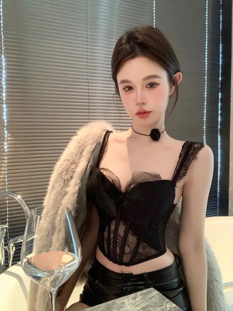 フレンチスイートホットガールレースキャミソールタンクトップ春と夏純粋セクシーストラップフィッシュボーントップ 大人ガーリー スウィート キュート カジュアル スプリング 春物 サマー 夏物 ピュア