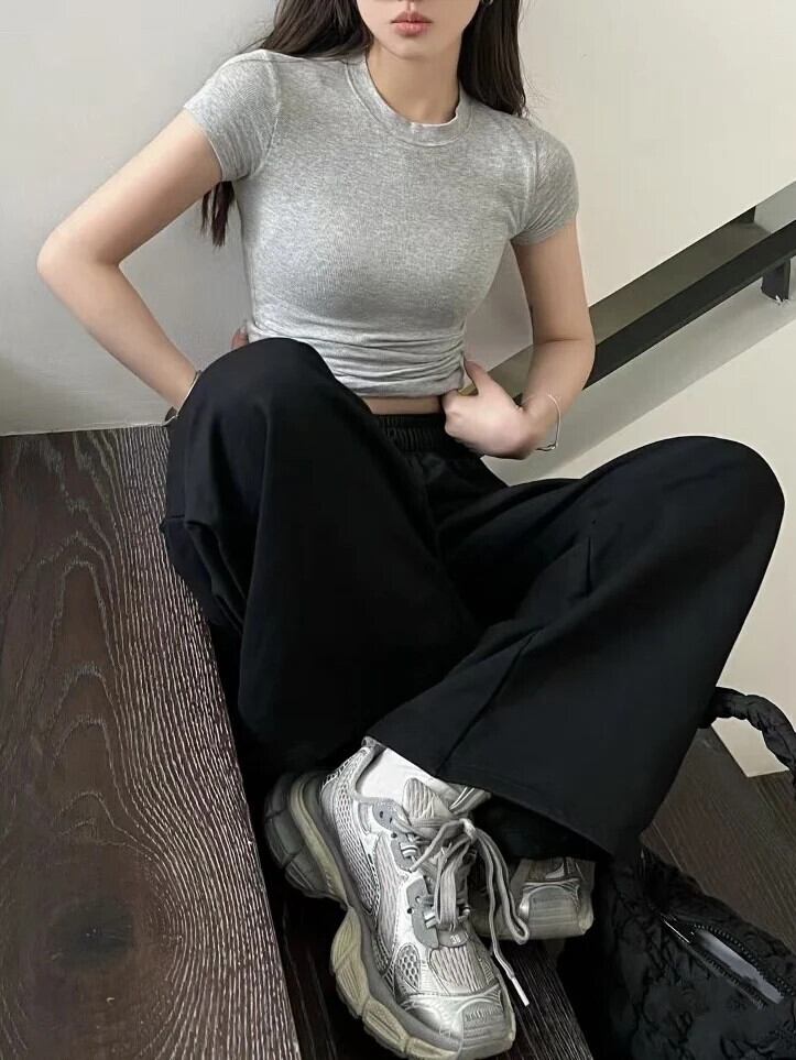 甘いホットガール半袖 Tシャツ春純粋セクシー O ネックスリムフィットグレートップ 大人ガーリー スウィート キュート カジュアル スプリング 春物 Oネック ピュア