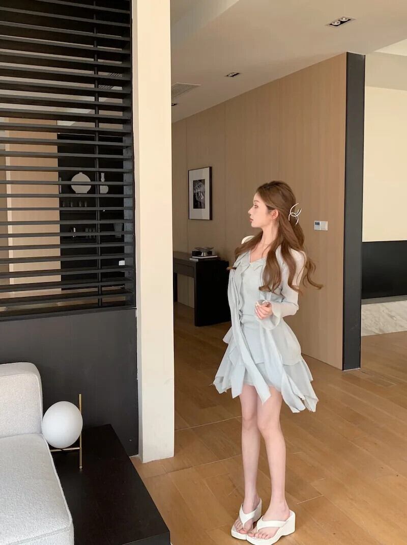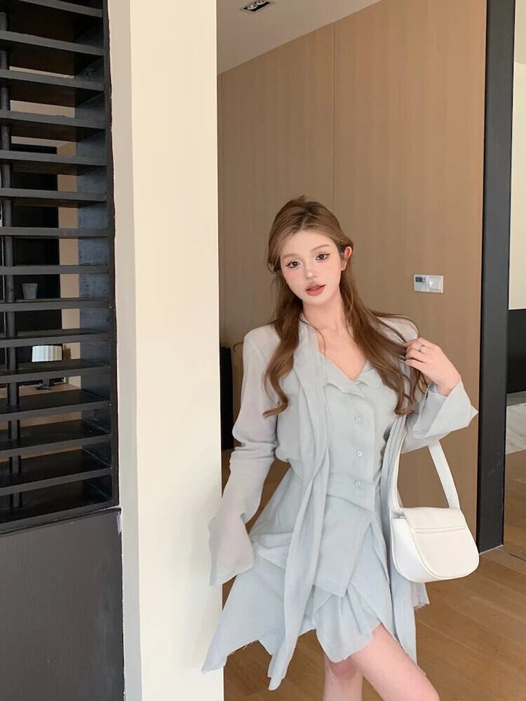 スイートホットガールスーツ春シャツジャケットキャミソールベストウエスト A ラインスカート 3 点セット 大人ガーリー スウィート キュート カジュアル スプリング 春物 Aライン