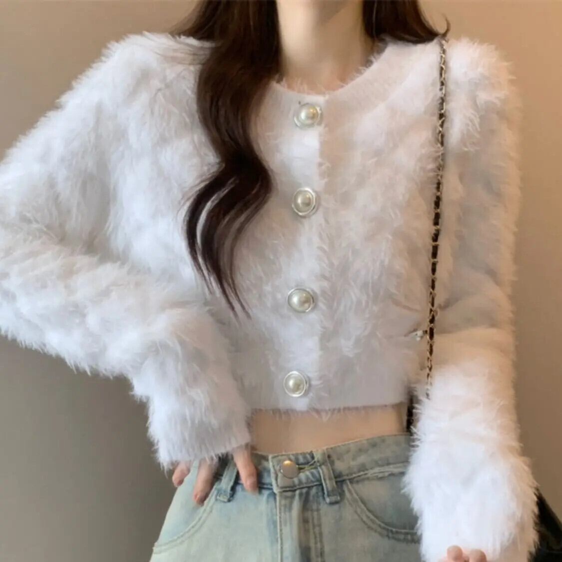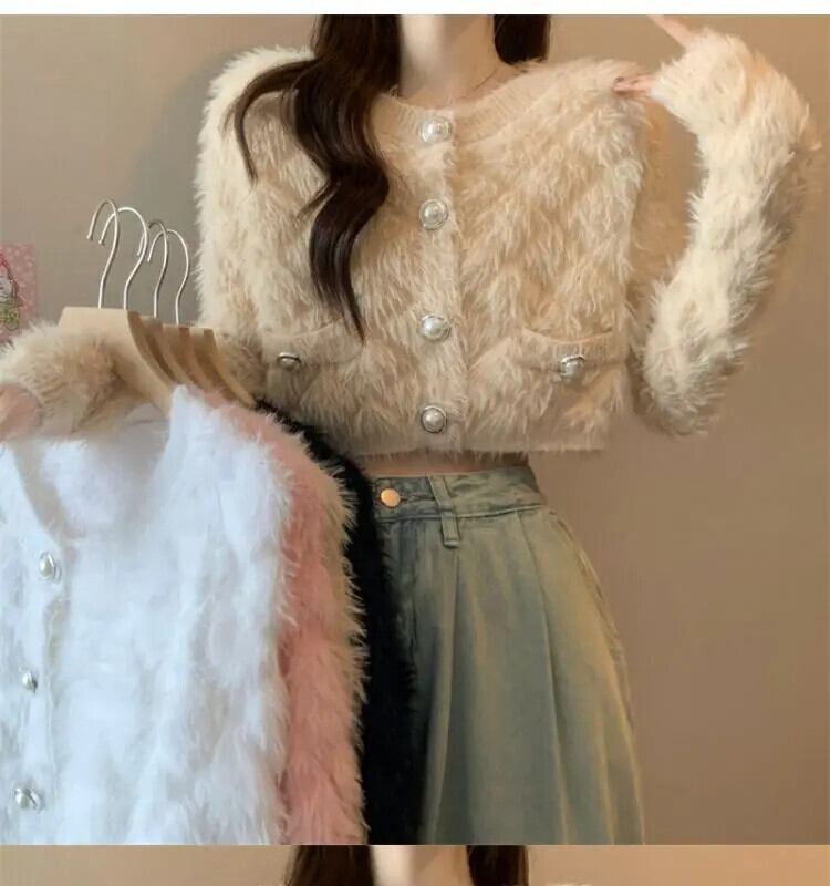 フレンチスイートホットガール長袖ニットカーディガン春Oネックショートセーターコート ロング 大人ガーリー スウィート キュート カジュアル スプリング 春物