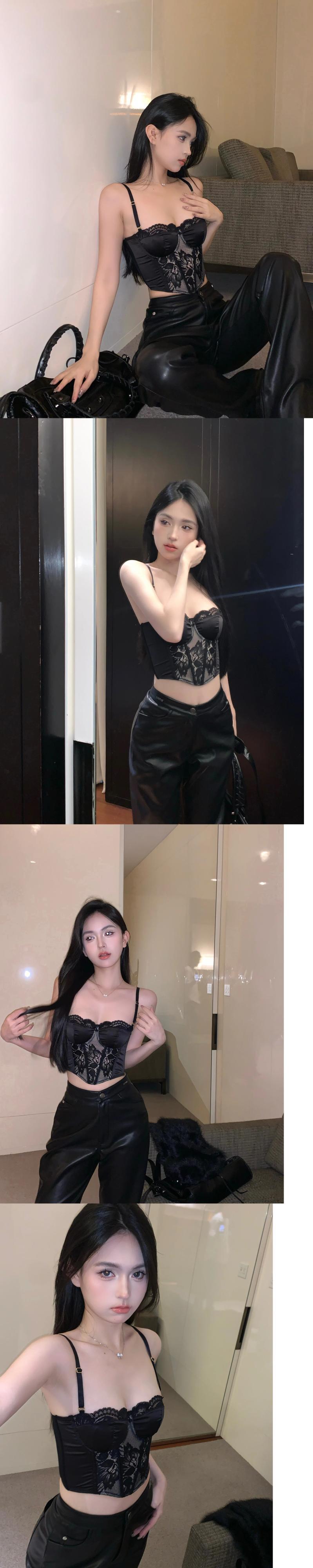 ホットガールレース調節可能ストラップキャミソール冬タイトフィットギャザー胸ラップショートタンクトップ レッド ウィンター 冬物 アジャスタブル