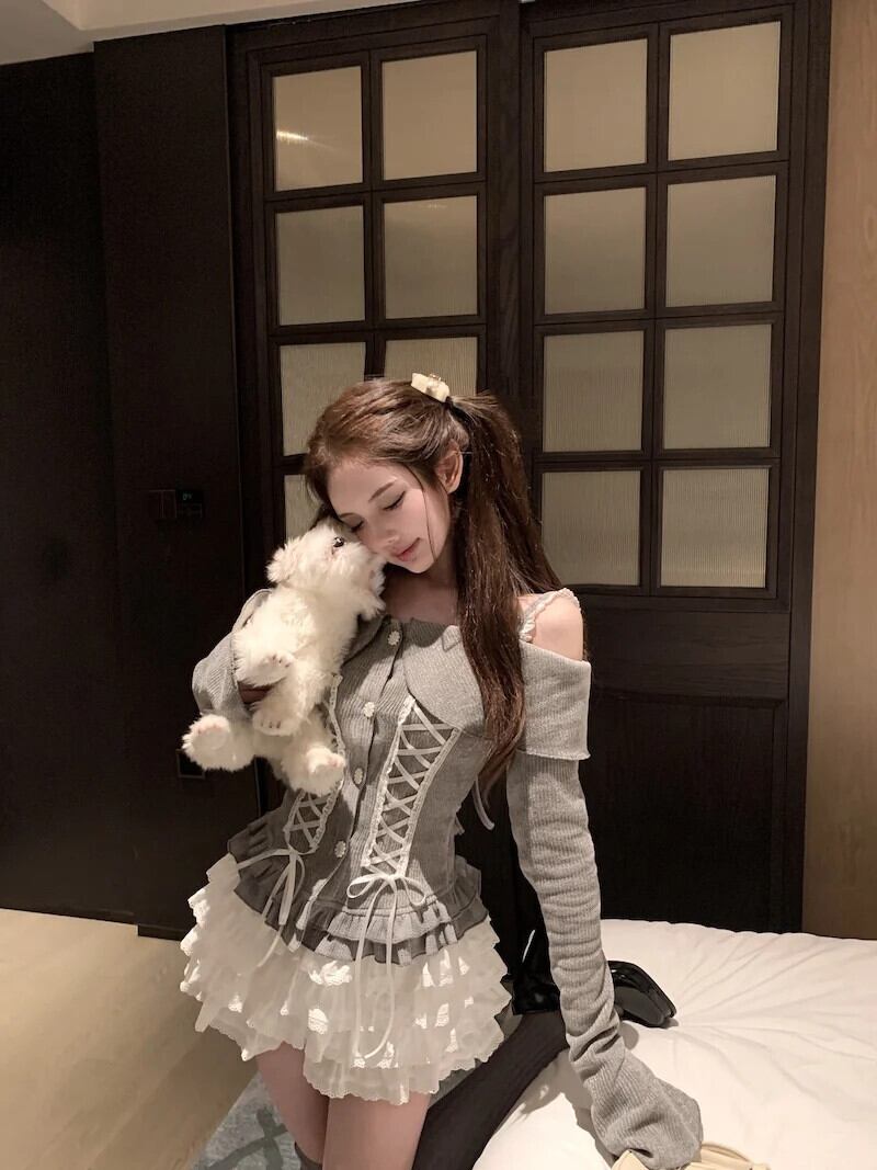 スイートガールスーツ レディース 春夏 スリム オフショルダー ホルターネック トップ Aライン ショートスカート 2点セット 大人ガーリー スウィート キュート カジュアル スプリング 春物 サマー 夏物