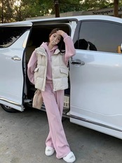 スイート ホット ガール ピンク スーツ レディース 秋冬 フード付き プルオーバー ウエスト ワイドレッグ パンツ 2 点セット 大人ガーリー スウィート キュート カジュアル オータム 秋物 ウィンター 冬物 ワイドパンツ