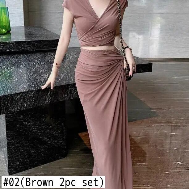 フレンチスイートホットガールスーツ夏 V ネックレースアップショートトップウエストロングスカート 2 点セット 大人ガーリー スウィート キュート カジュアル サマー 夏物 Vネック