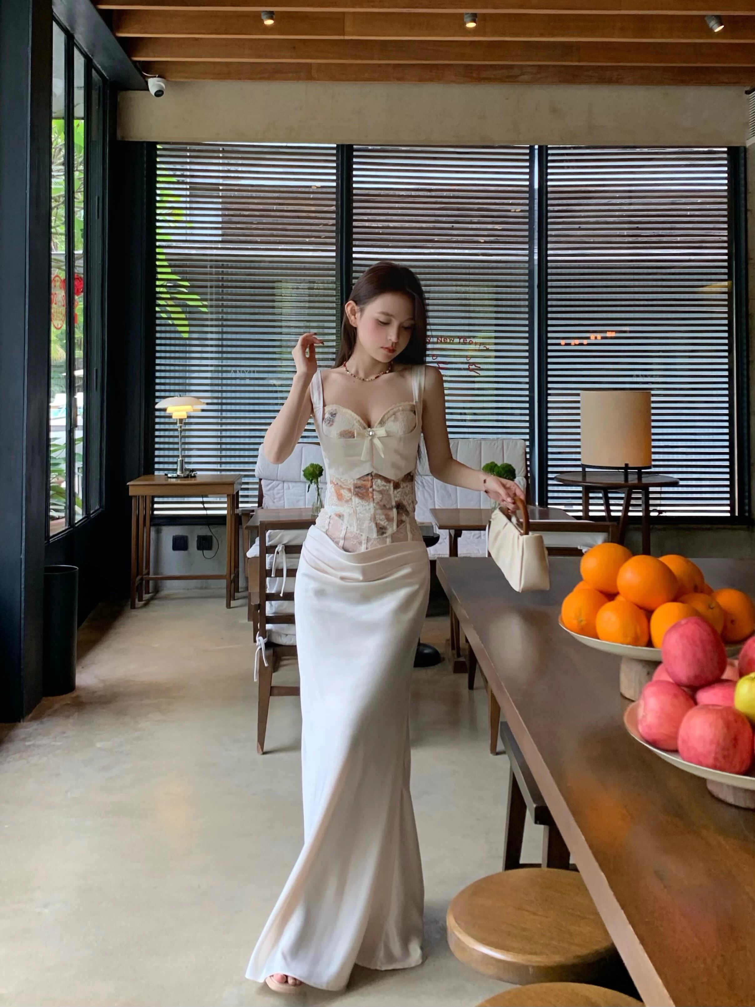 甘いホットガールスーツ秋と冬スリムフィットフィッシュボーンベストウエストロングスカートツーピースセット 大人ガーリー スウィート キュート カジュアル オータム 秋物 ウィンター 冬物