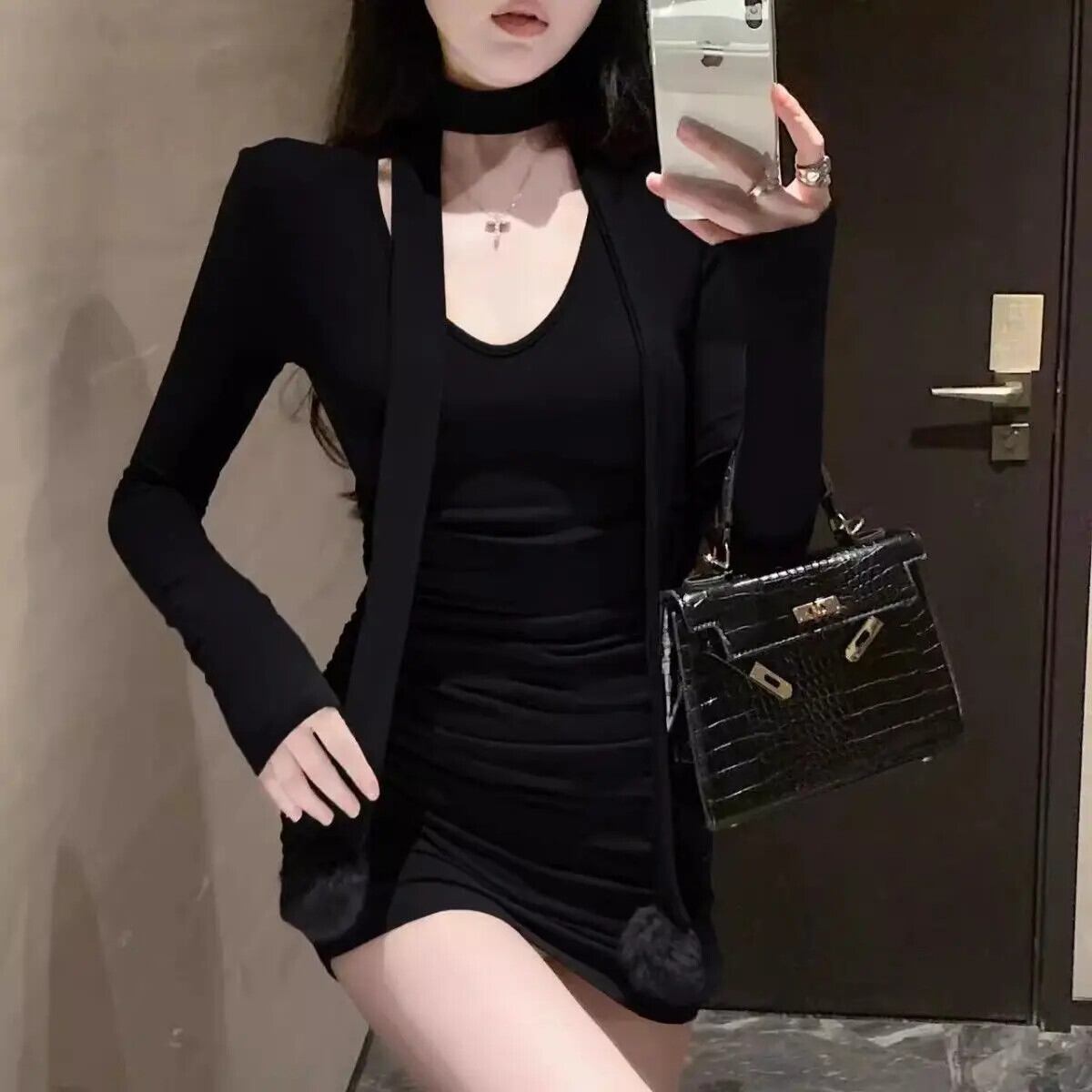 甘いホットガールパープル長袖ドレス秋純粋セクシー V ネックタイトフィットラップヒップドレス ロング 大人ガーリー スウィート キュート カジュアル オータム 秋物 Vネック ピュア