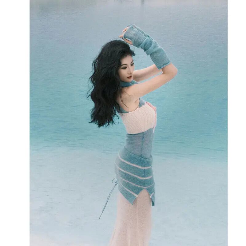 Mmohair 対照的カラースーツ秋と冬パイルアップ襟ドレスミニスカート袖 3 点セット オータム 秋物 ウィンター 冬物