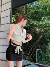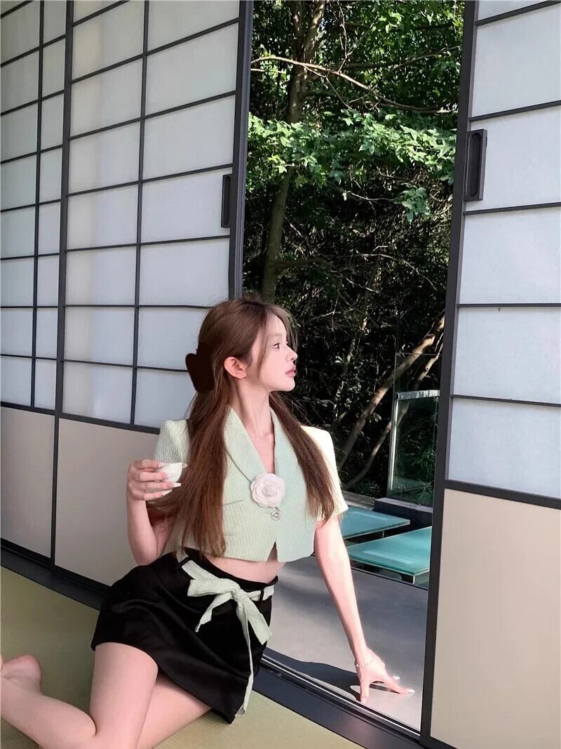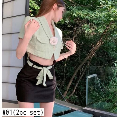 Sweet Hot Girl スーツ レディース 春夏 ターンダウンカラー 半袖 ジャケット ウエスト付き ミニスカート 2点セット 大人ガーリー スウィート キュート カジュアル スプリング 春物 サマー 夏物