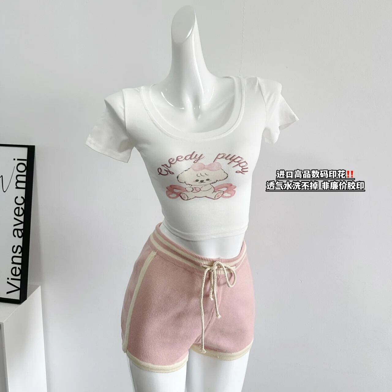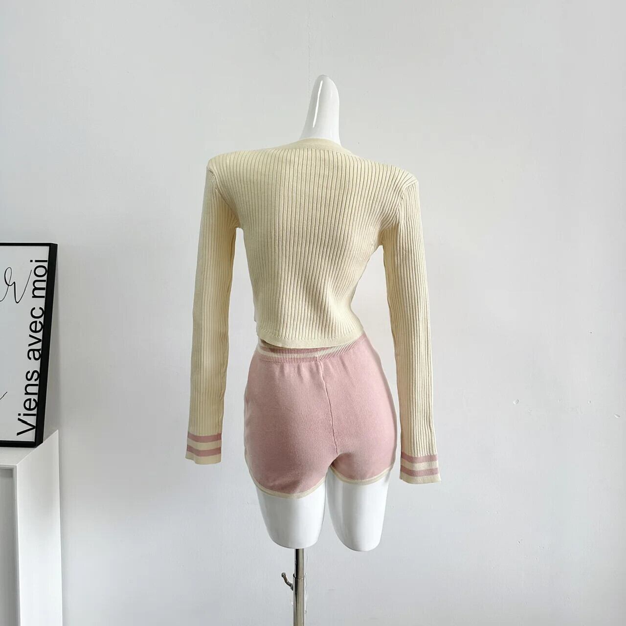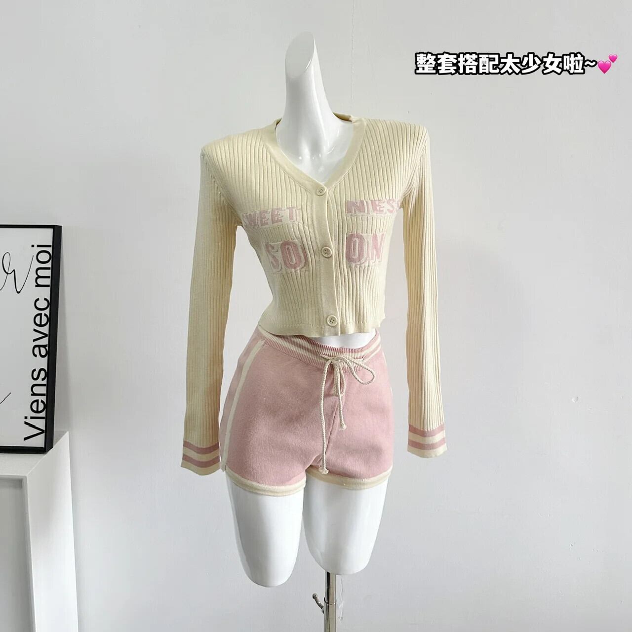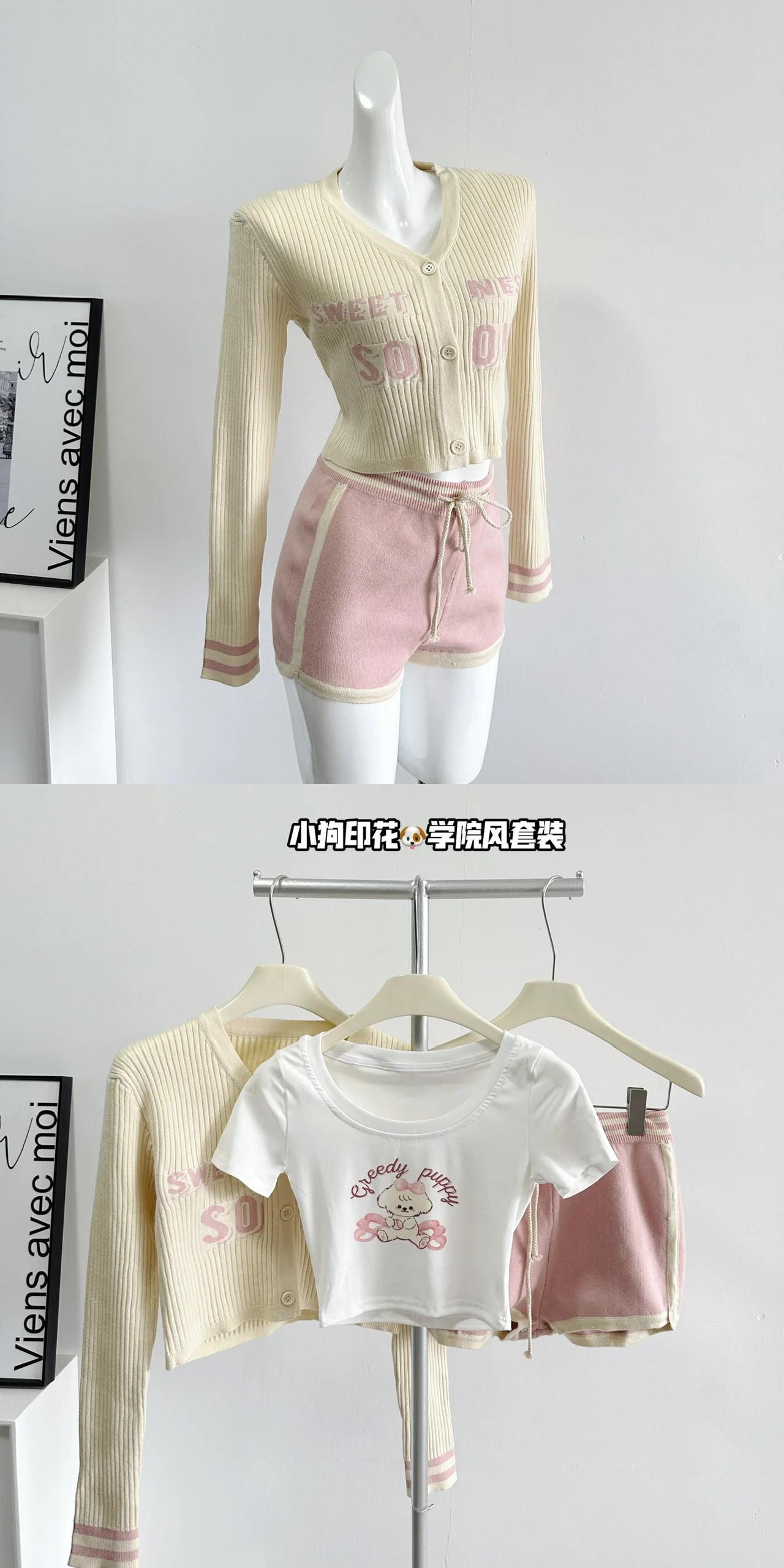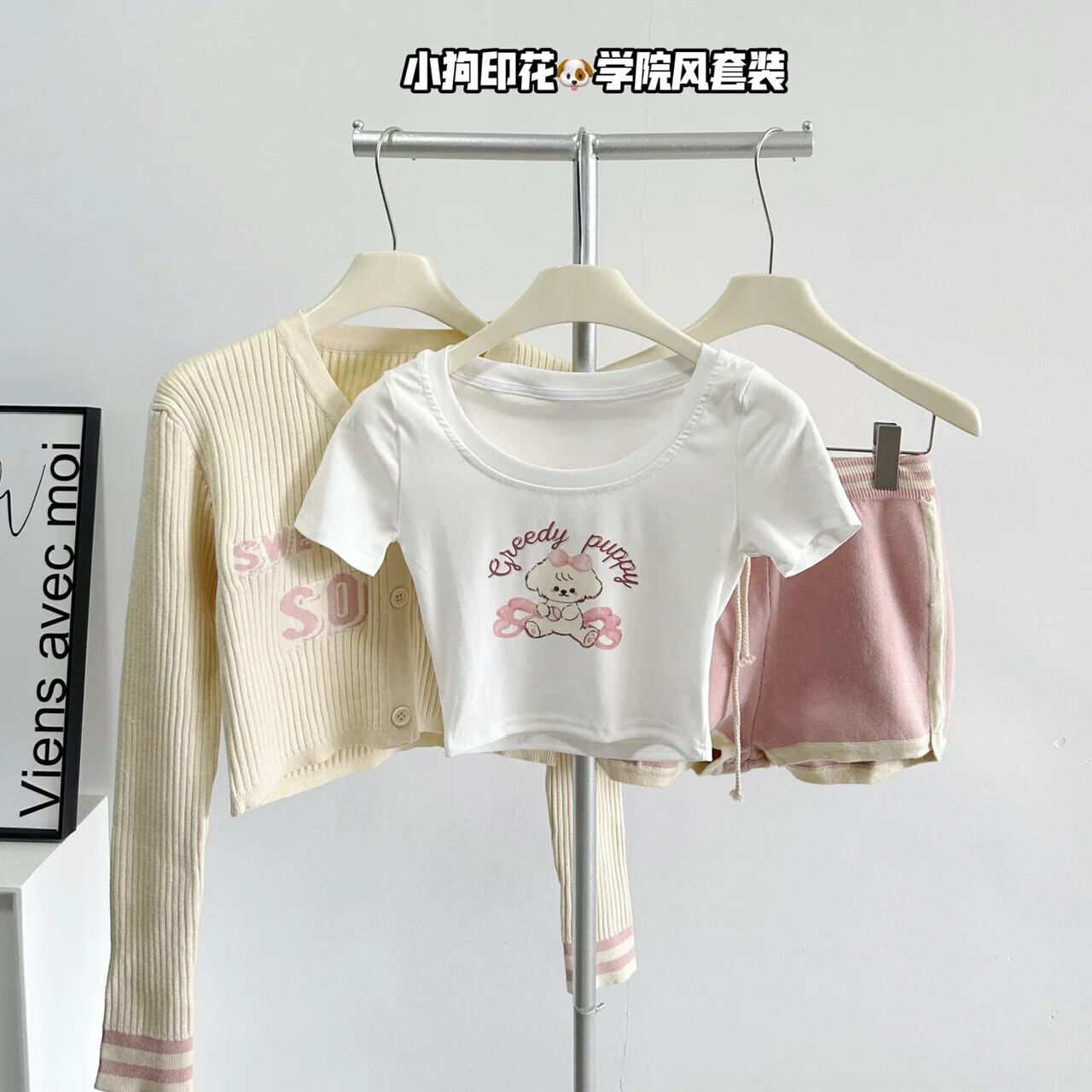 甘いホットガールスーツ春夏プリントスリム Tシャツショーツニットカーディガン 3 点セット 大人ガーリー スウィート キュート カジュアル スプリング 春物 サマー 夏物 ブルマー