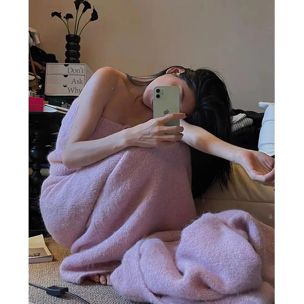 甘いホットガールスーツ春レトロ長袖カーディガンストラップレスベストウエストロングスカート 3 点セット 大人ガーリー スウィート キュート カジュアル スプリング 春物