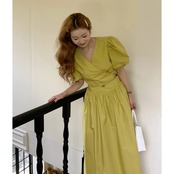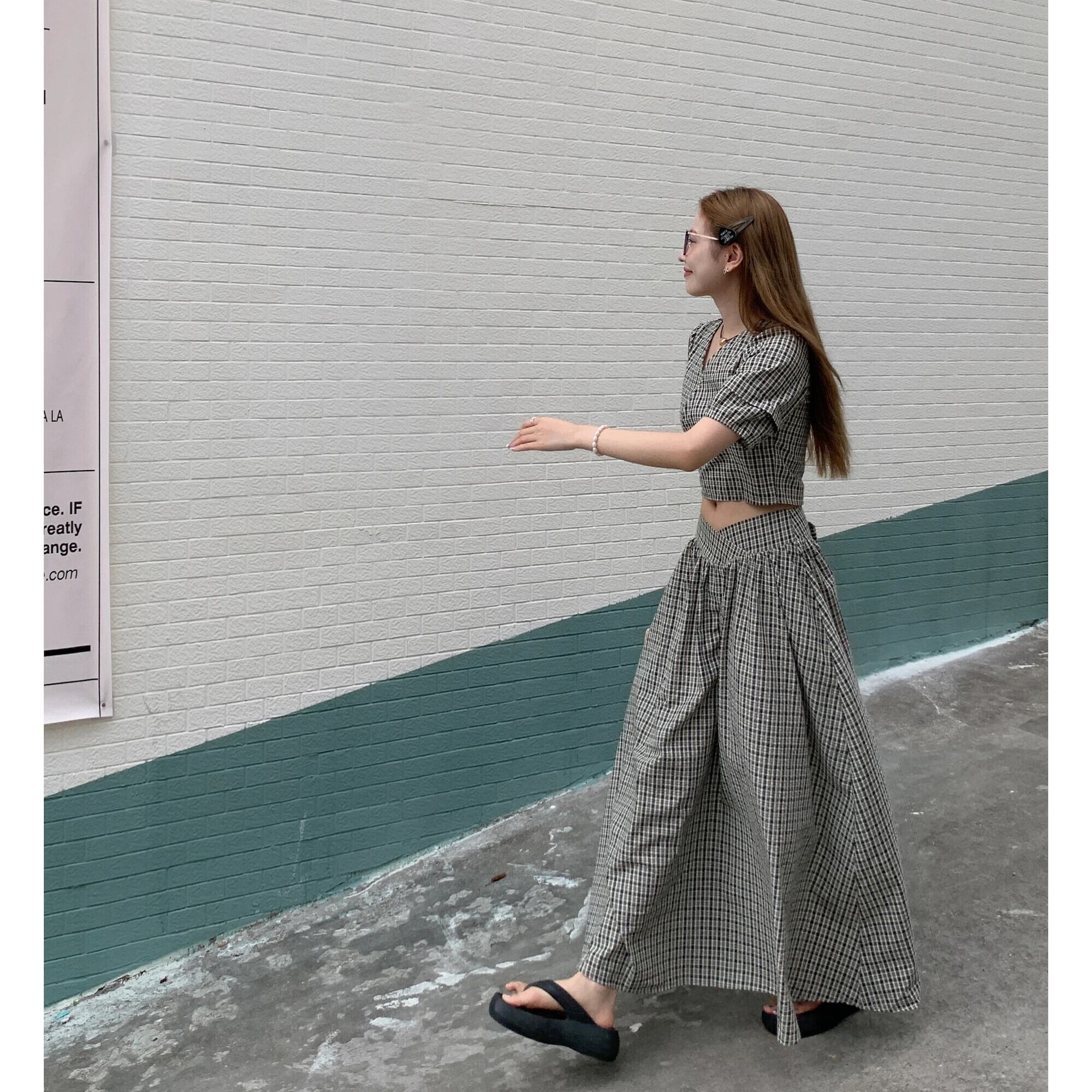 スイートホットガールスーツ レディース 春夏 Vネック レースアップ ショートトップ ウエスト Aライン ロングスカート ツーピースセット 大人ガーリー スウィート キュート カジュアル スプリング 春物 サマー 夏物
