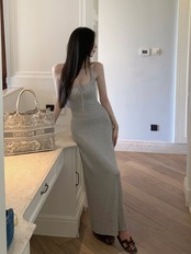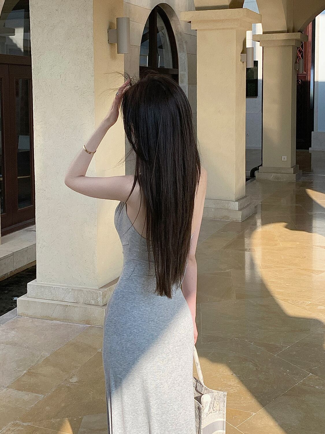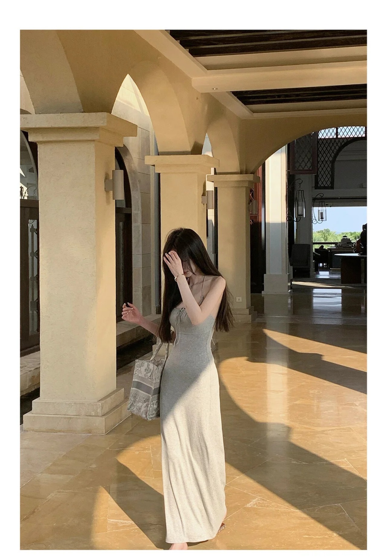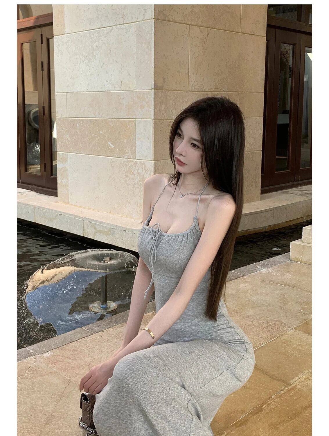 甘いホットガールレースアップネックホルタードレス夏純粋セクシースリムフィットストラップバックレスロングドレス 大人ガーリー スウィート キュート カジュアル サマー 夏物 ピュア