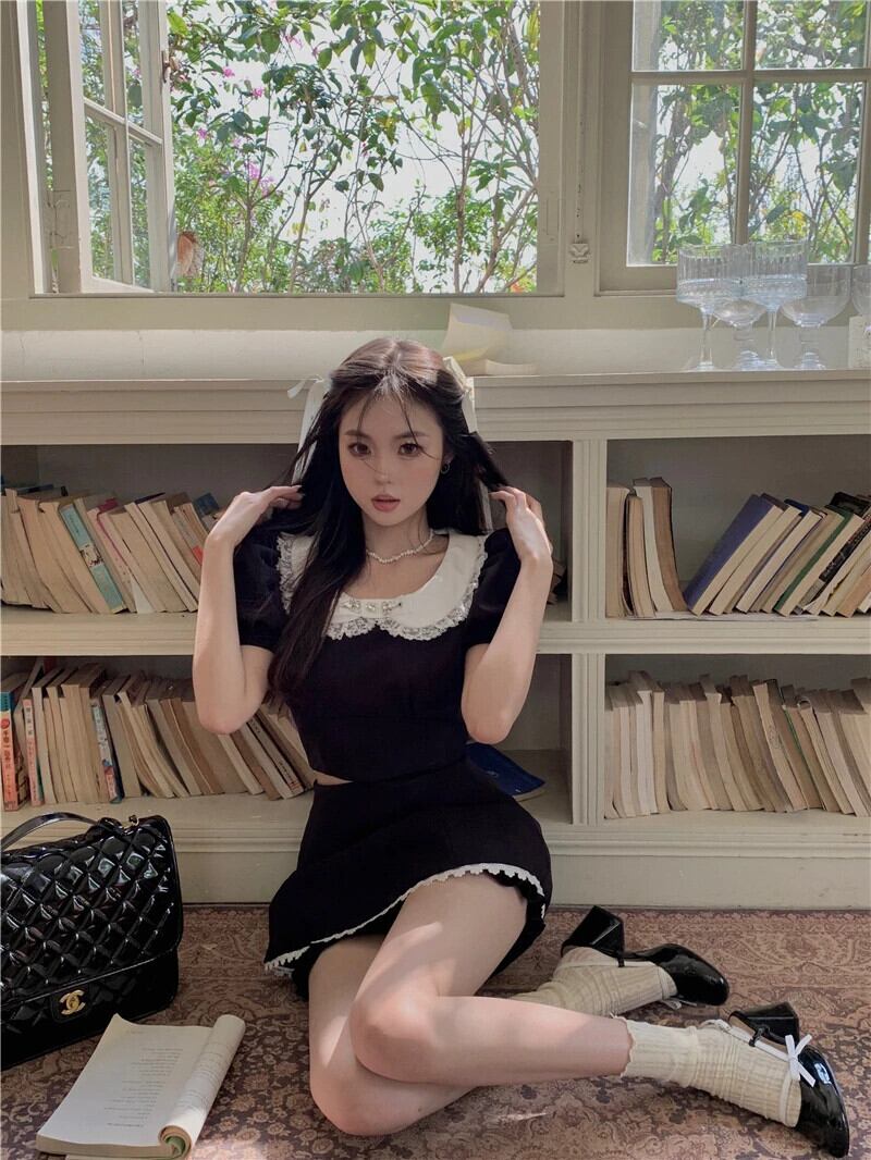 スイートホットガールスーツ春夏バブルスリーブダイヤモンドレーストップウエストミニスカートツーピースセット 大人ガーリー スウィート キュート カジュアル スプリング 春物 サマー 夏物