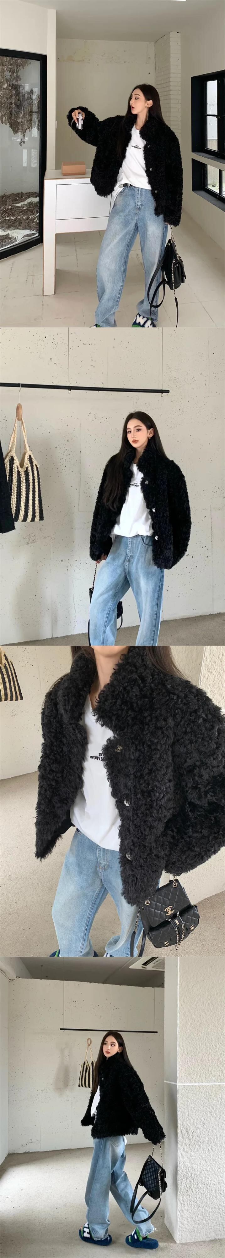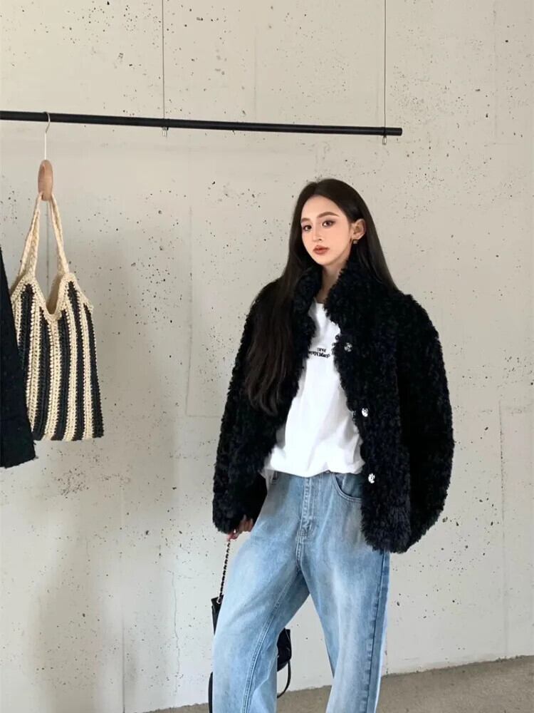 ホットガールラムウールスタンドカラー長袖ショートジャケット冬ルースウールカーディガントップ ロング ウィンター 冬物