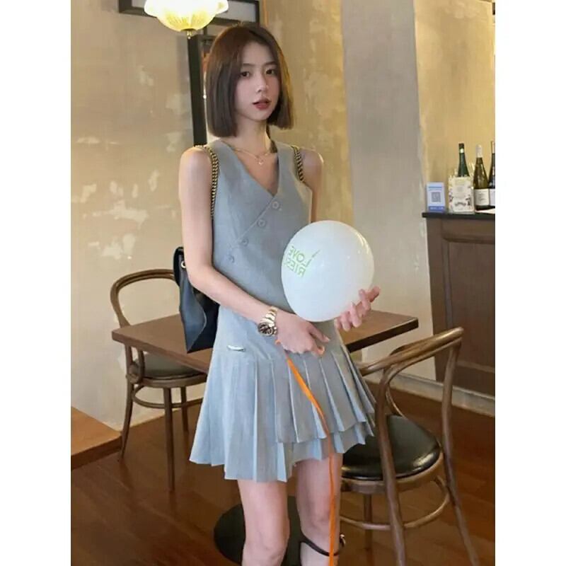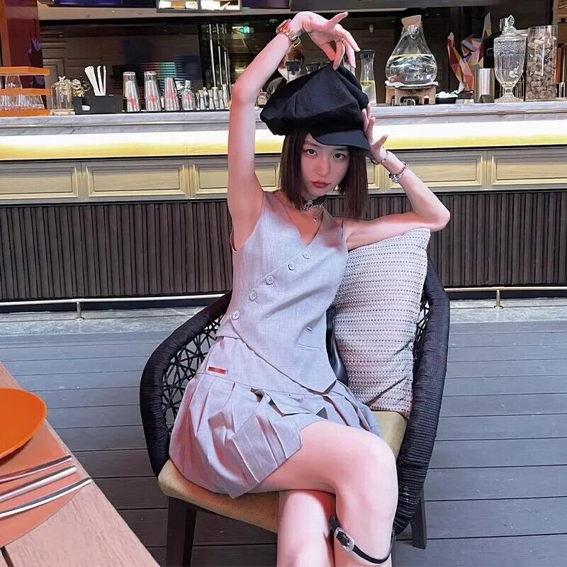 スイートホットガールセットサマードレス無地スリムフィットベストウエストミニスカートツーピースセット 大人ガーリー スウィート キュート カジュアル 夏物 ソリッドカラー