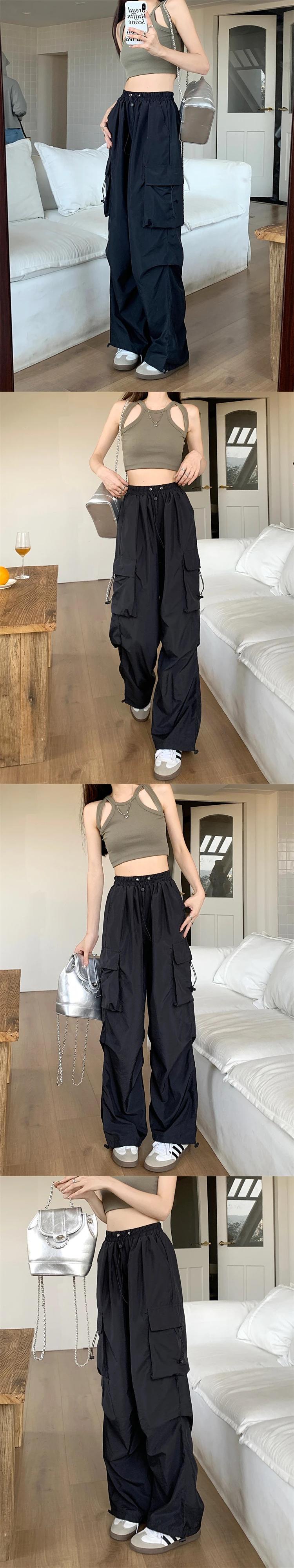 アメリカンスタイルホットガール速乾性作業パンツ春弾性ウエストルーズストレートレッグワイドレッグロングパンツ エラスティック 伸縮 スプリング 春物 ワイドパンツ