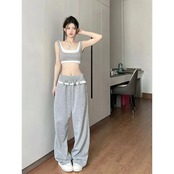 甘いホットガールスポーツスーツ夏フェイクツーピースタンクトップウエストワイドレッグパンツツーピースセット 大人ガーリー スウィート キュート カジュアル サマー 夏物 ワイドパンツ