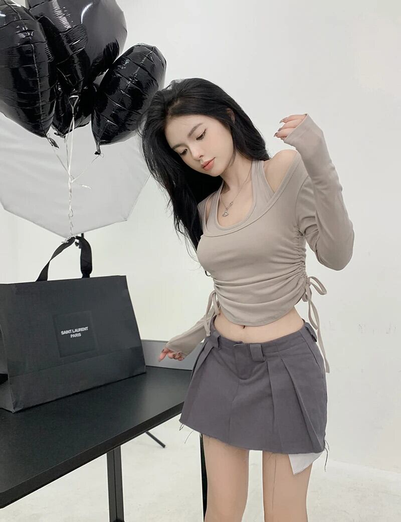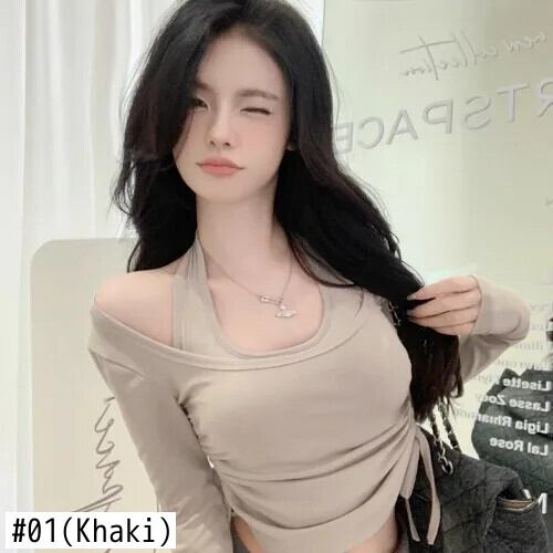 Sweet Girl ピュアセクシーセット レディース 春 巾着 長袖 Tシャツ ホルターネック キャミソール 2点セット ロング 大人ガーリー スウィート キュート カジュアル スプリング 春物