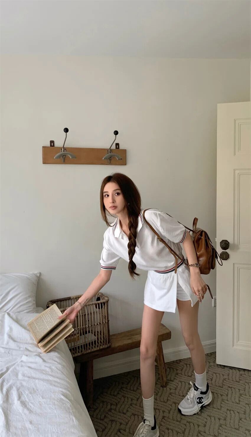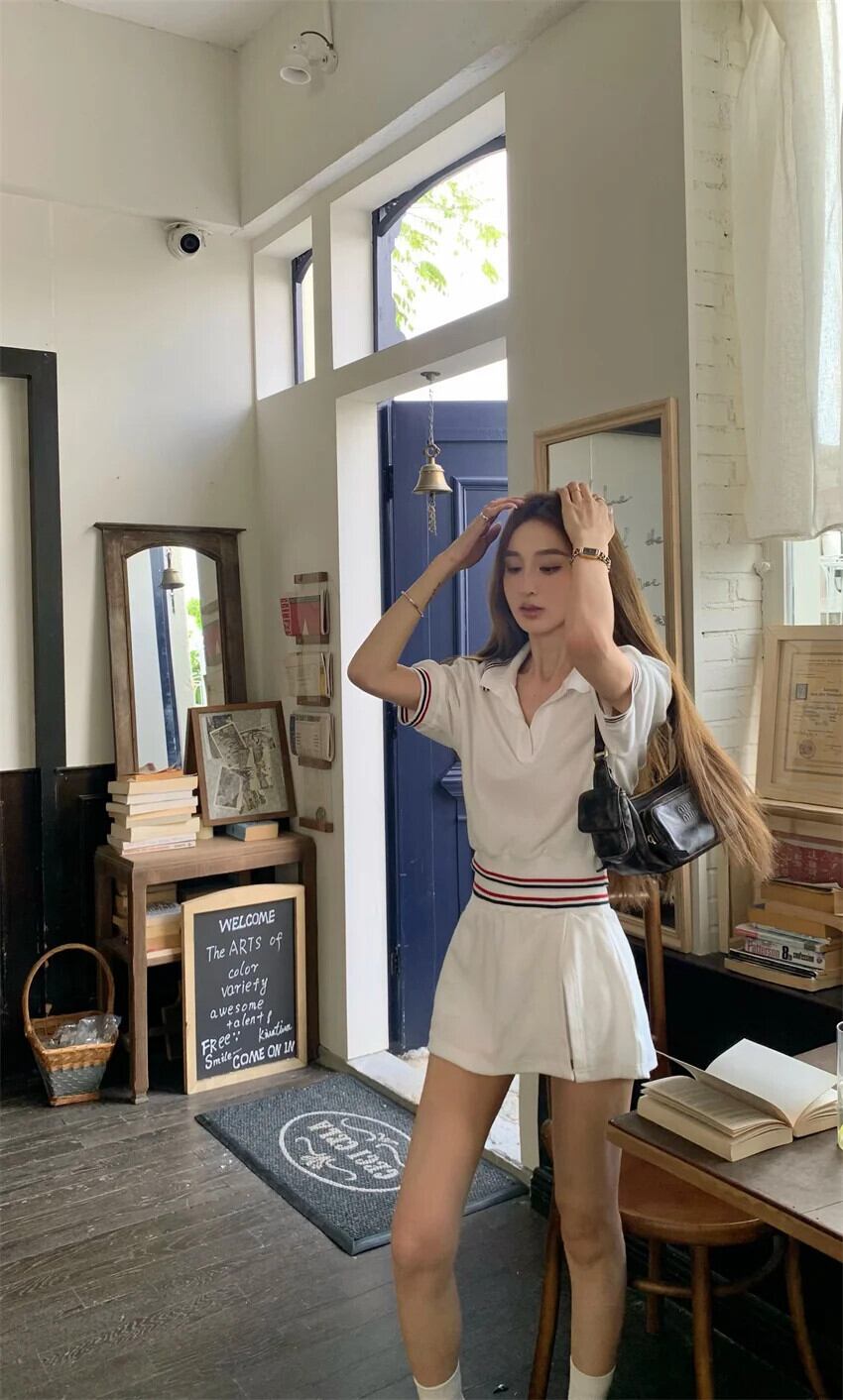 スイートホットガールスポーツスーツレディース春ポロネック半袖TシャツスプリットAラインスカートツーピーススカートセット ショート ハーフスリーブ 大人ガーリー スウィート キュート カジュアル スプリング 春物 Oネック