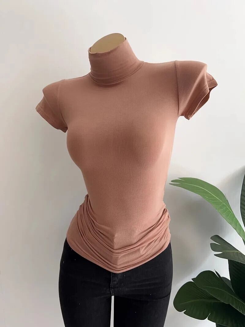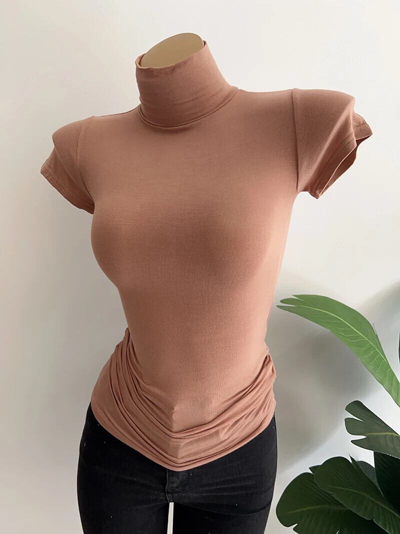 純粋セクシーホットガールタートルネック半袖 Tシャツ春マイクロ透明タイトフィットトップ スプリング 春物