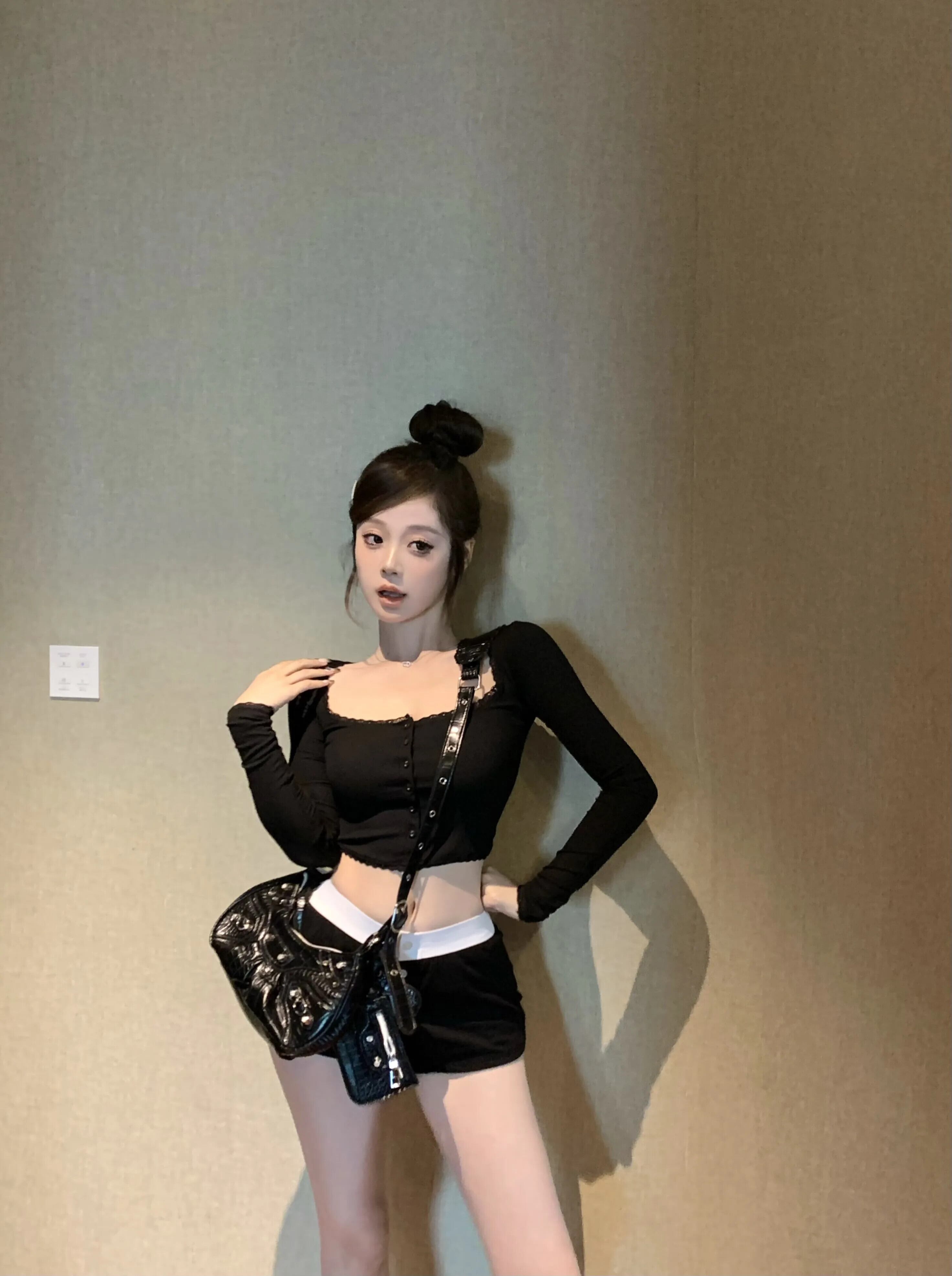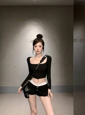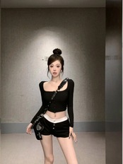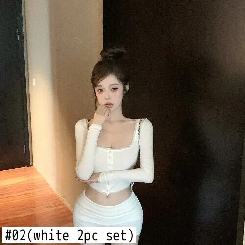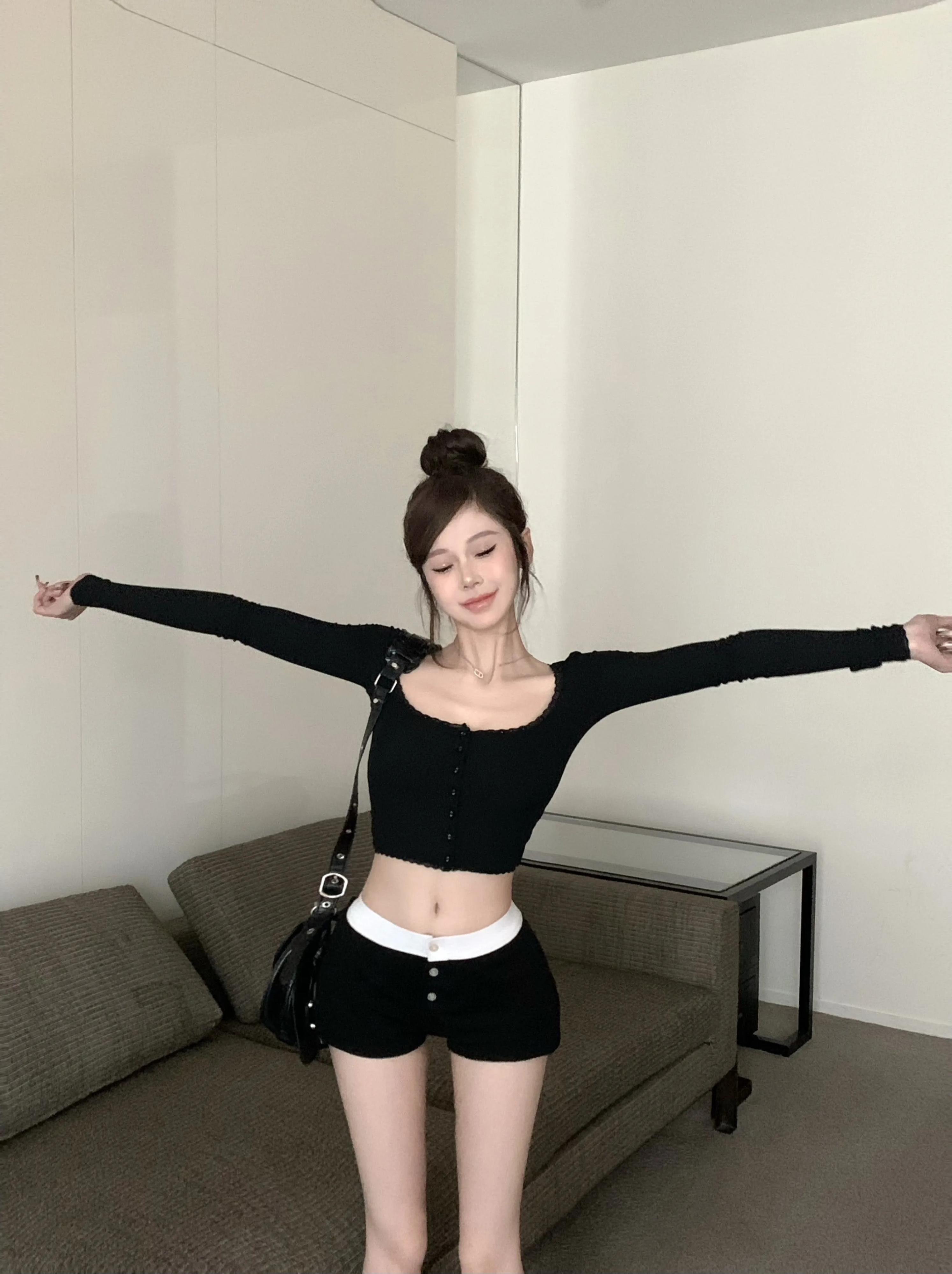 スイートホットガールスーツ春長袖レーススクエアカラートップスリムフィットショーツツーピースセット ロング 大人ガーリー スウィート キュート カジュアル スプリング 春物 ブルマー スクウェア