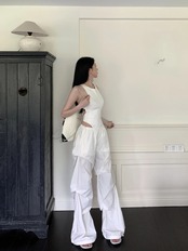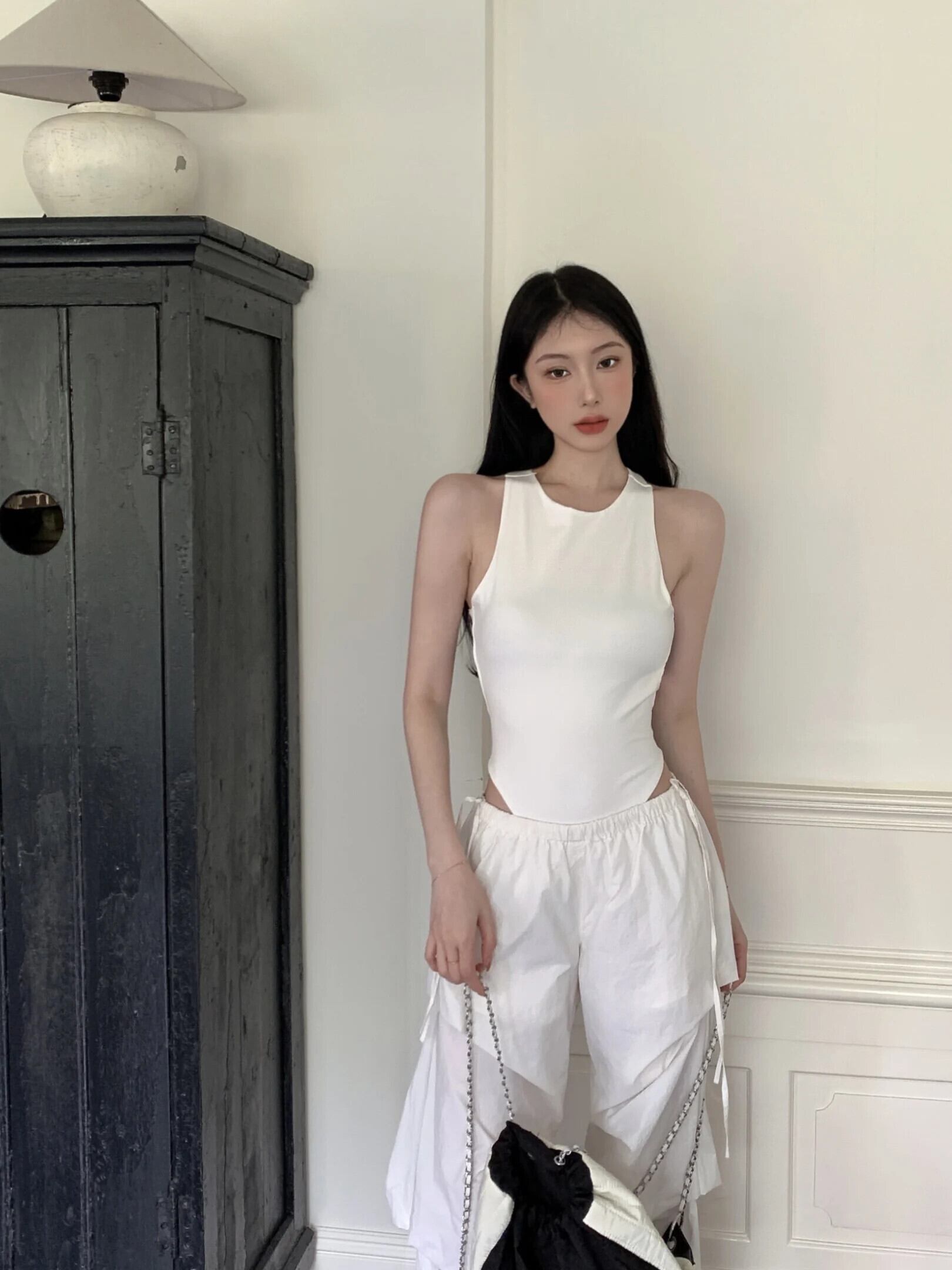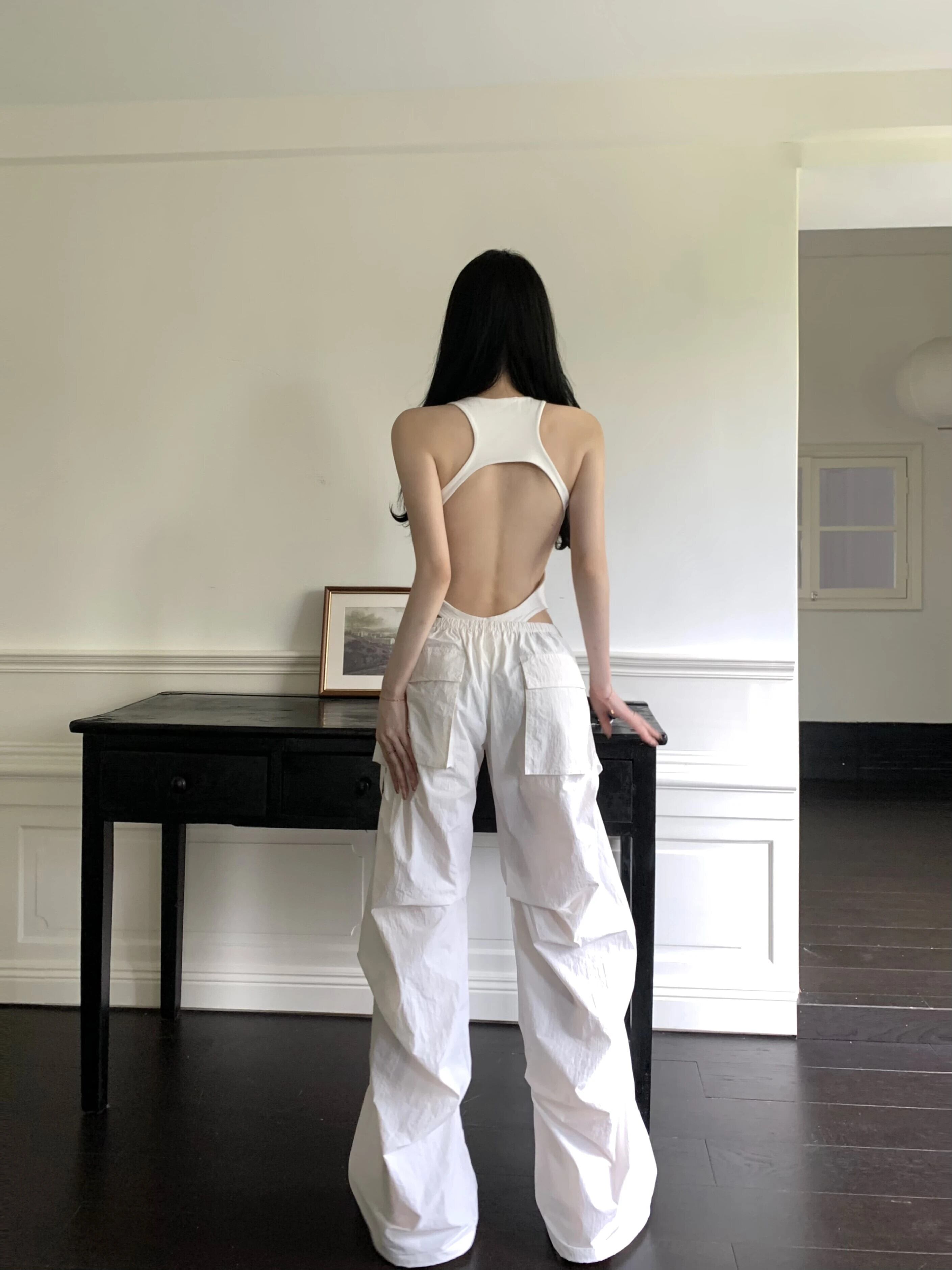 甘いホットガールスーツ春スリム底ノースリーブベストトップワイドレッグカーゴパンツツーピースセット 大人ガーリー スウィート キュート カジュアル スプリング 春物 ワイドパンツ