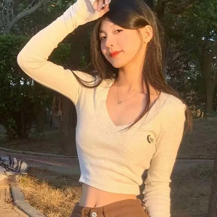 甘いホットガール綿スリムフィットショート Tシャツ春/夏純粋セクシー長袖トップ ロング コットン 大人ガーリー スウィート キュート カジュアル スプリング 春物 サマー 夏物 ピュア