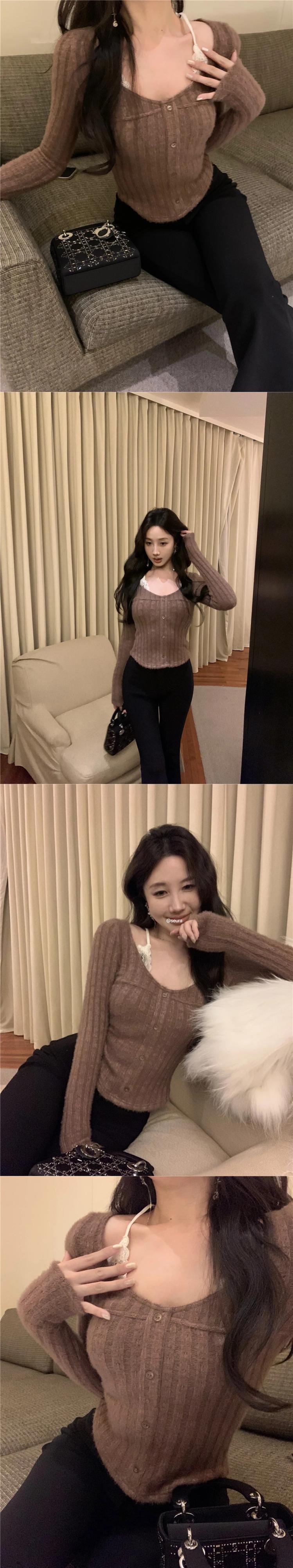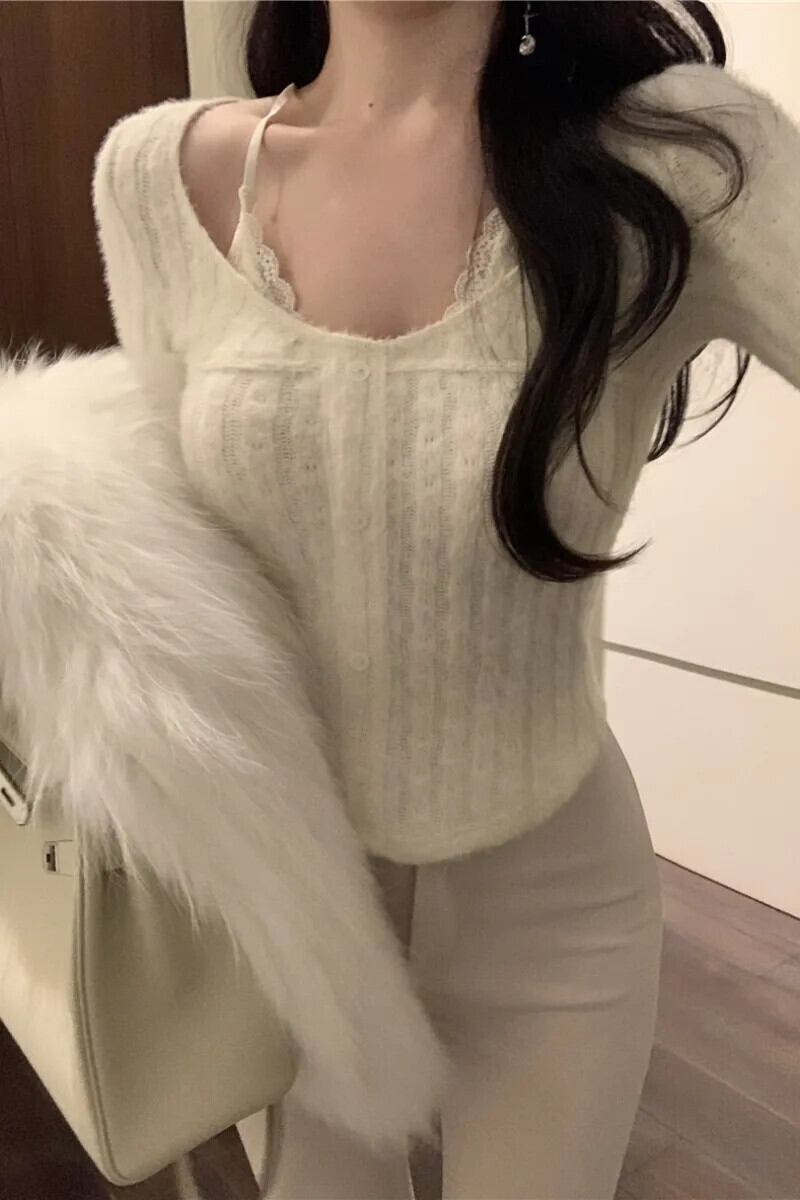 ホットガール V ネックレースホルターネックニットプルオーバー秋/冬純粋セクシースリムフィット底セータートップ オータム 秋物 ウィンター 冬物 Vネック ピュア