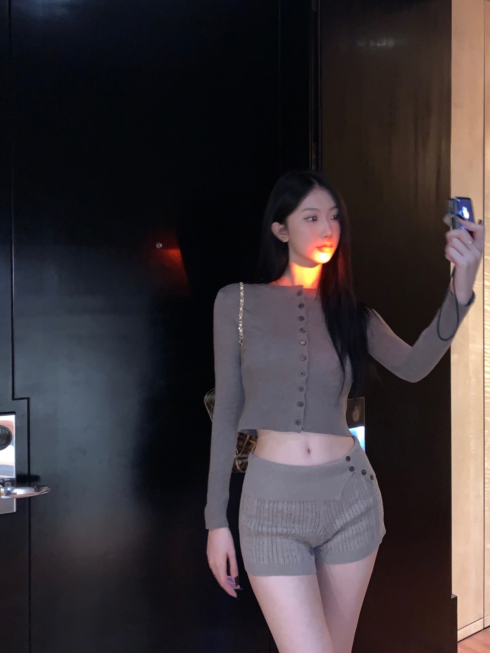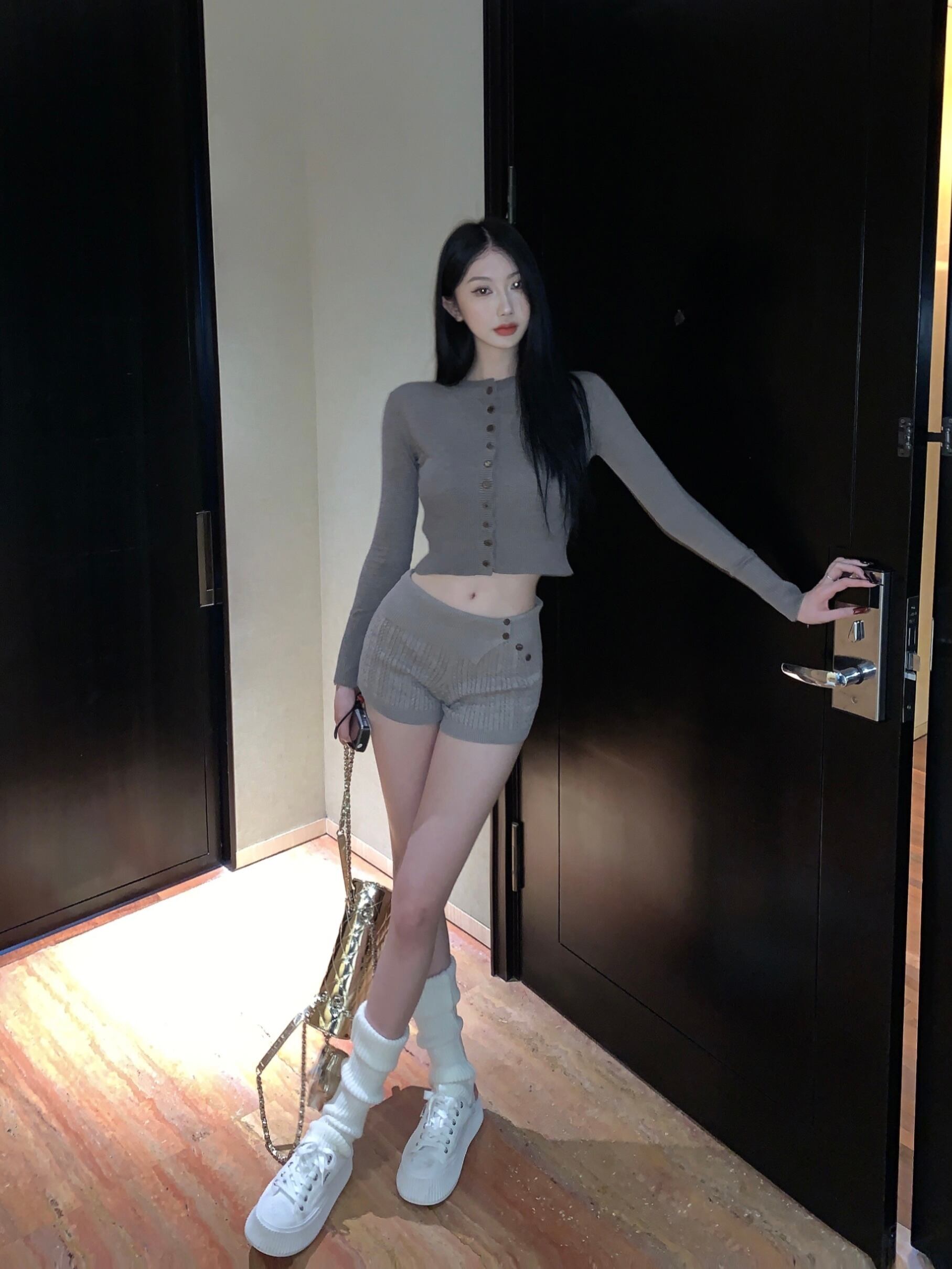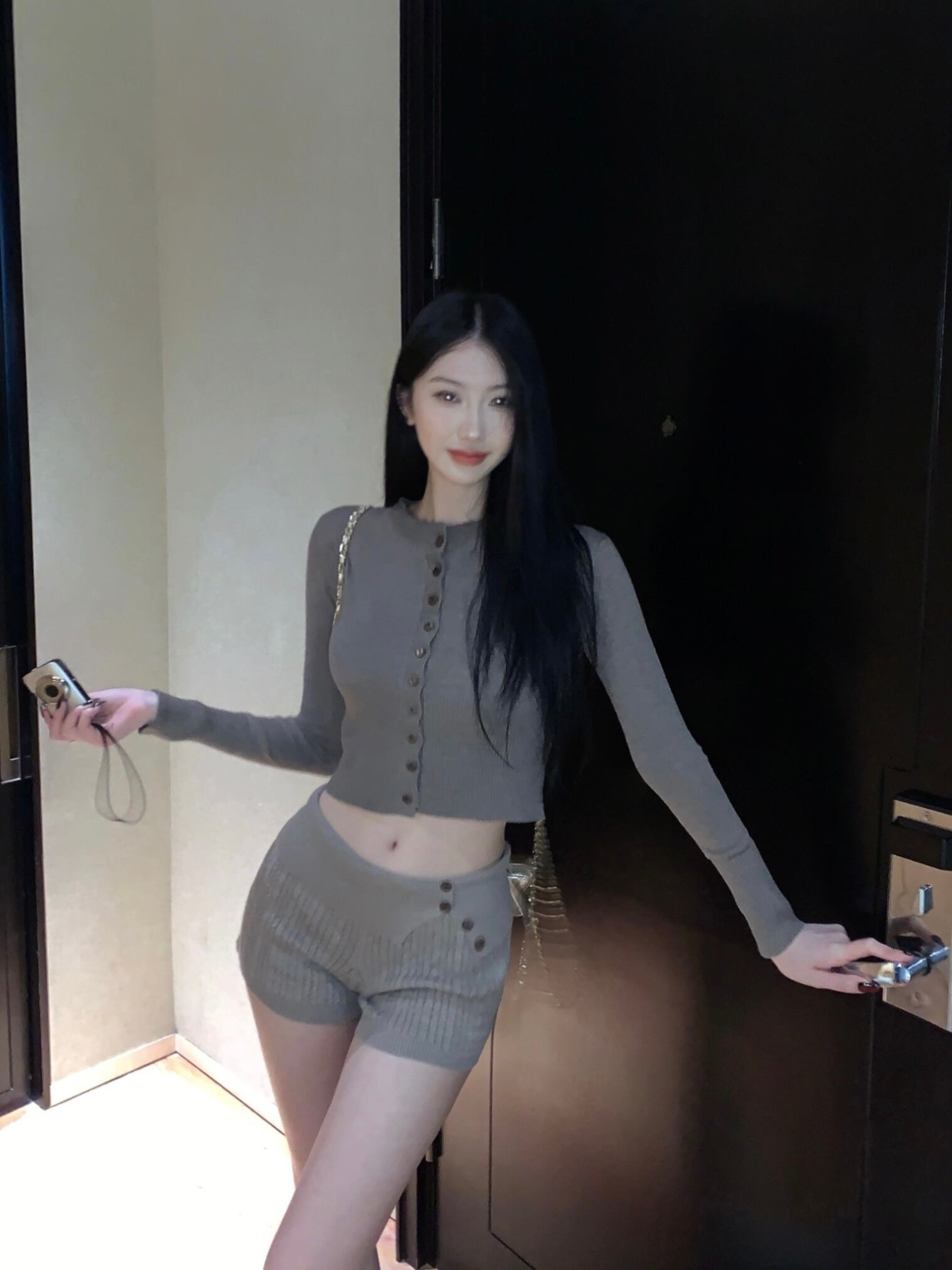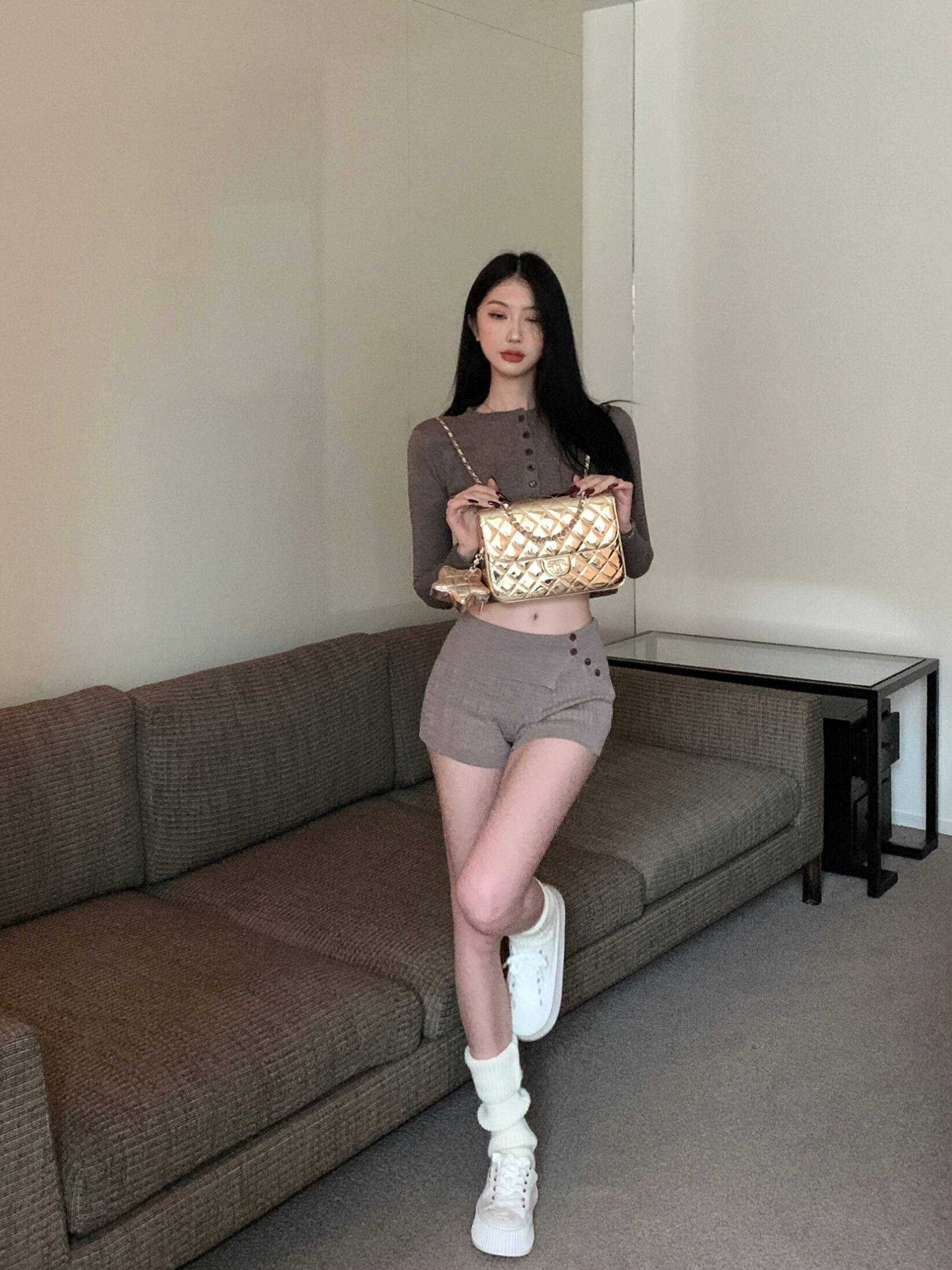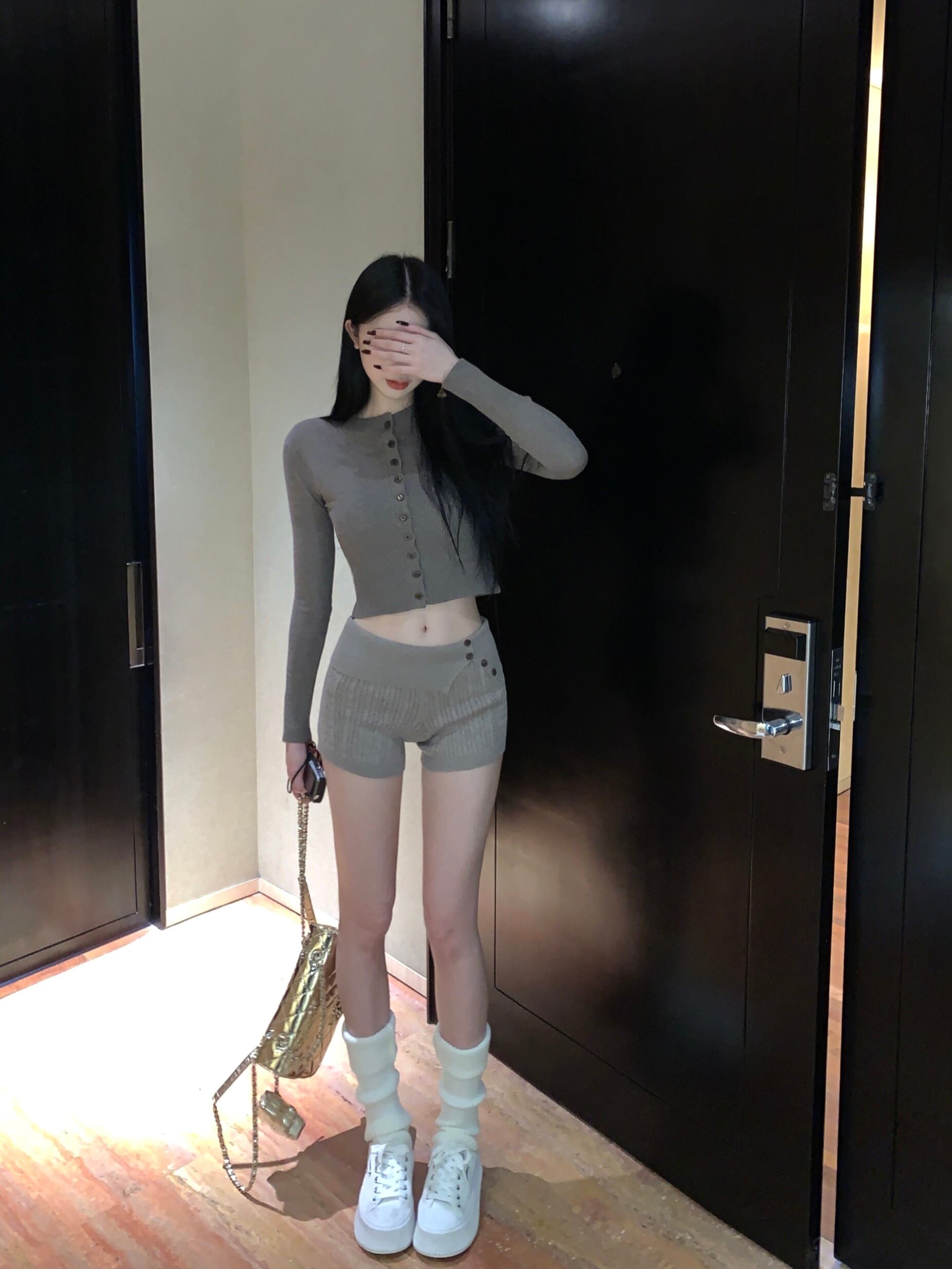アメリカンホットガールスーツ春レトロシングルブレストニットシャツショーツツーピースセット スプリング 春物 ブルマー