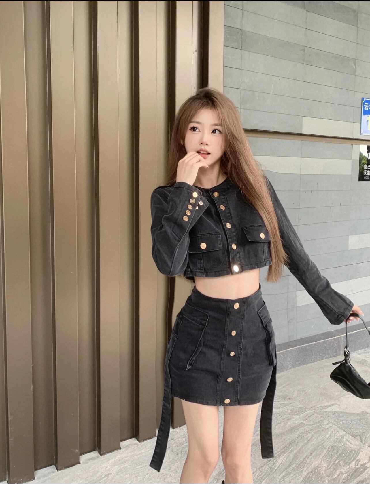 スイートホットガールスーツ秋/冬長袖ショートデニムコートウエストラップヒップミニスカートツーピースセット ロング 大人ガーリー スウィート キュート カジュアル オータム 秋物 ウィンター 冬物