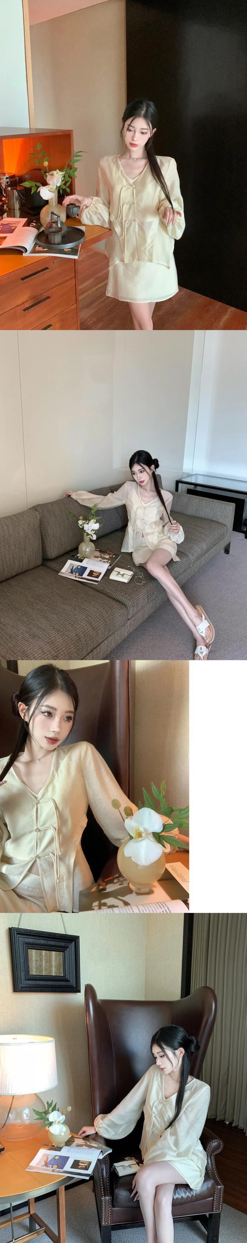 Sweet Girl チャイナスーツ レディース 春ボタンシャツ ストラップ タンクトップ ウエスト ミニスカート 3点セット 大人ガーリー スウィート キュート カジュアル スプリング 春物