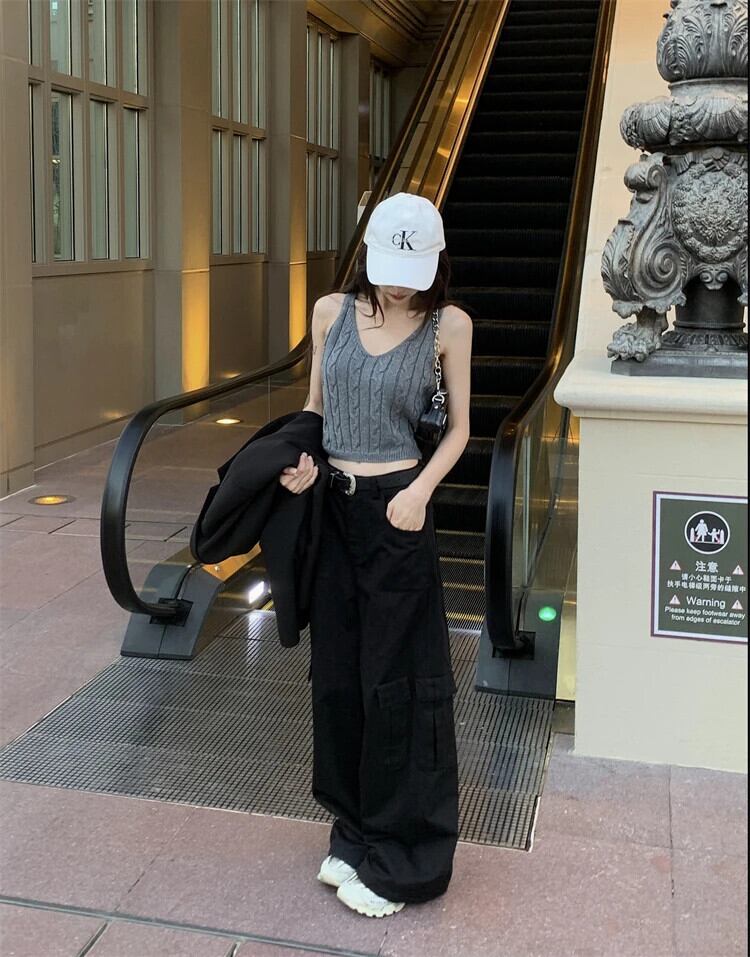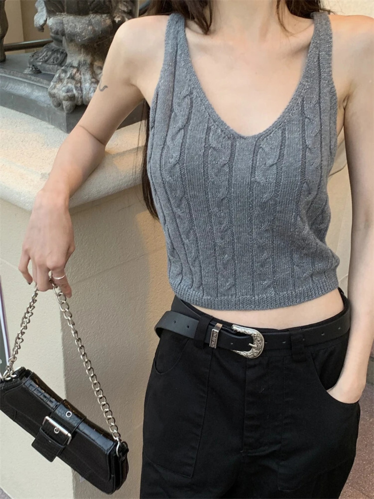 甘いホットガールグレーツイストニットストラップベスト夏 V ネックスリムボトリングシャツトップ 大人ガーリー スウィート キュート カジュアル サマー 夏物 Vネック
