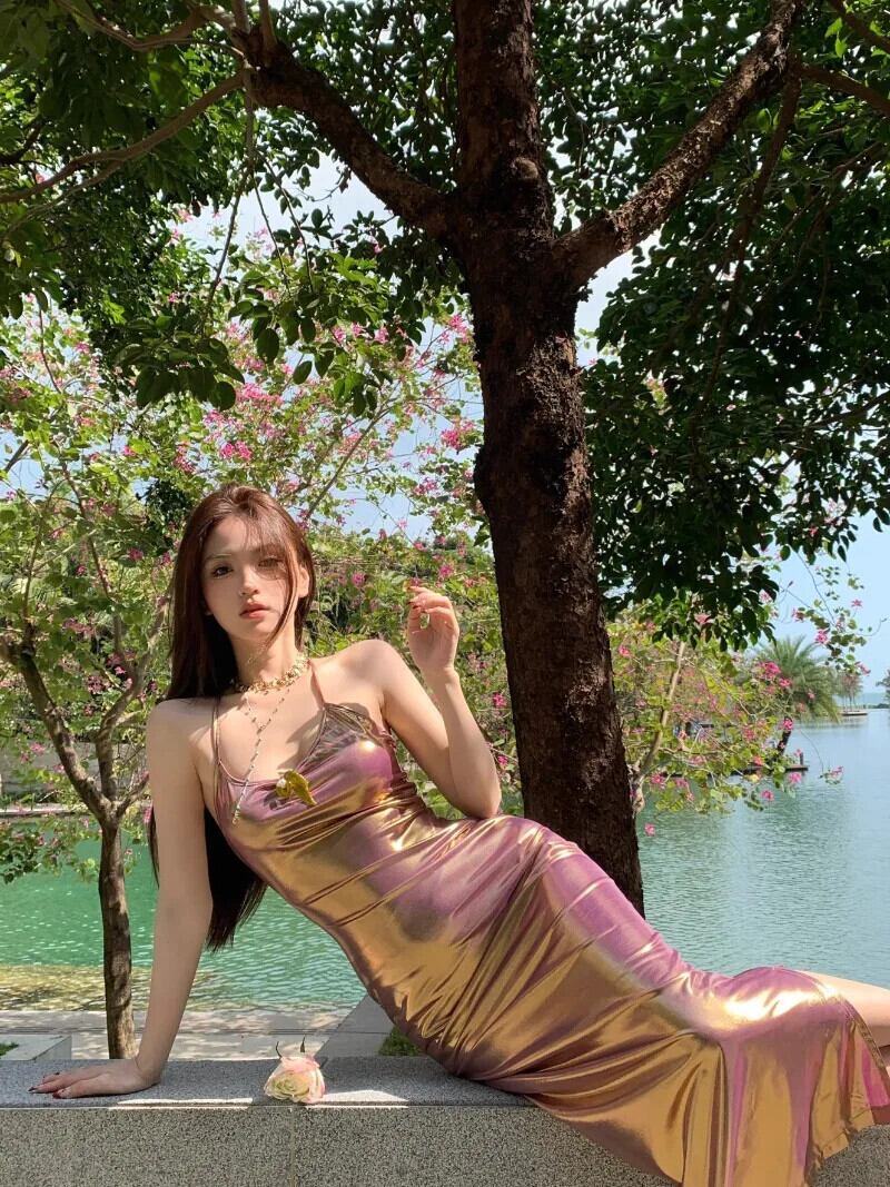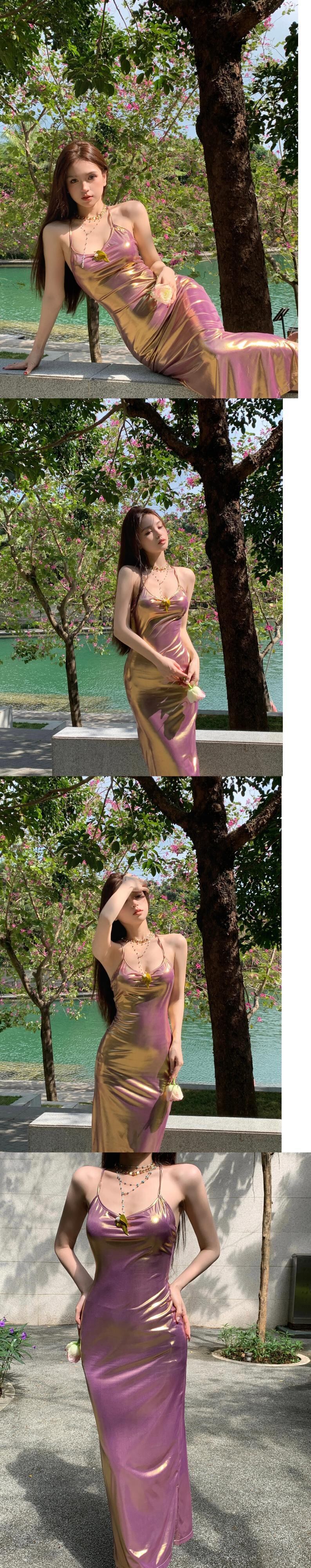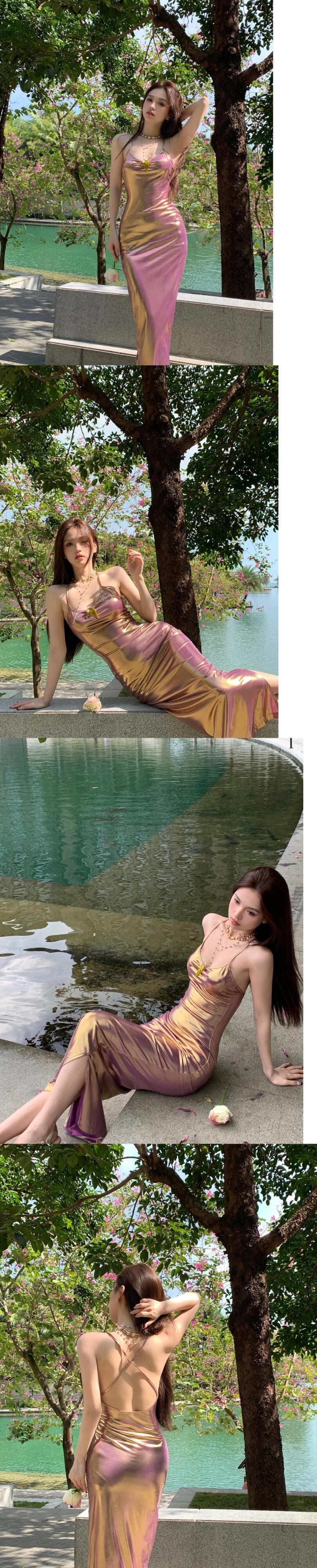 甘いホットガールグラデーションバックレスドレス秋と冬セクシースリムフィット尻ロングドレス 大人ガーリー スウィート キュート カジュアル オータム 秋物 ウィンター 冬物