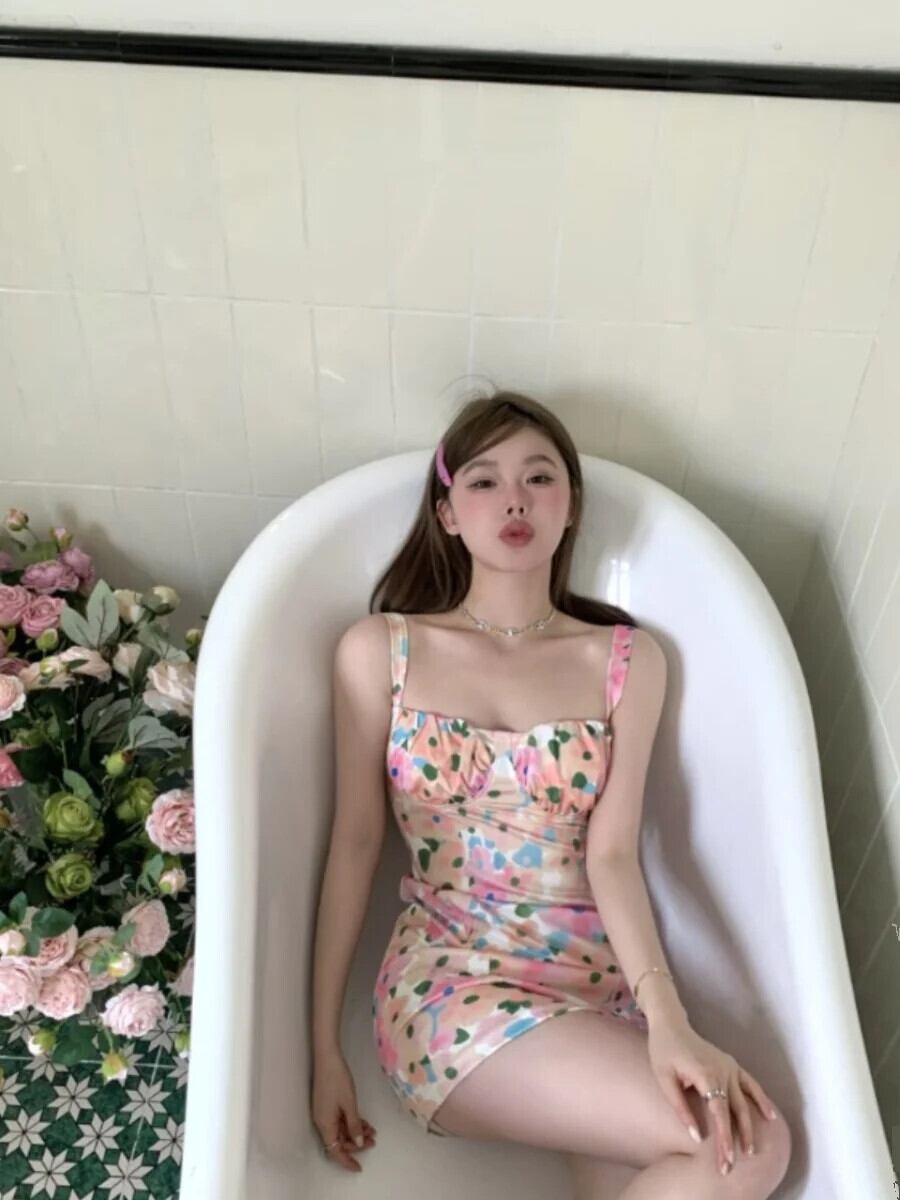 甘いホットガール純粋セクシー花柄ストラップドレス春/夏スリムフィットヒップラップショートドレス 大人ガーリー スウィート キュート カジュアル スプリング 春物 サマー 夏物 ピュア
