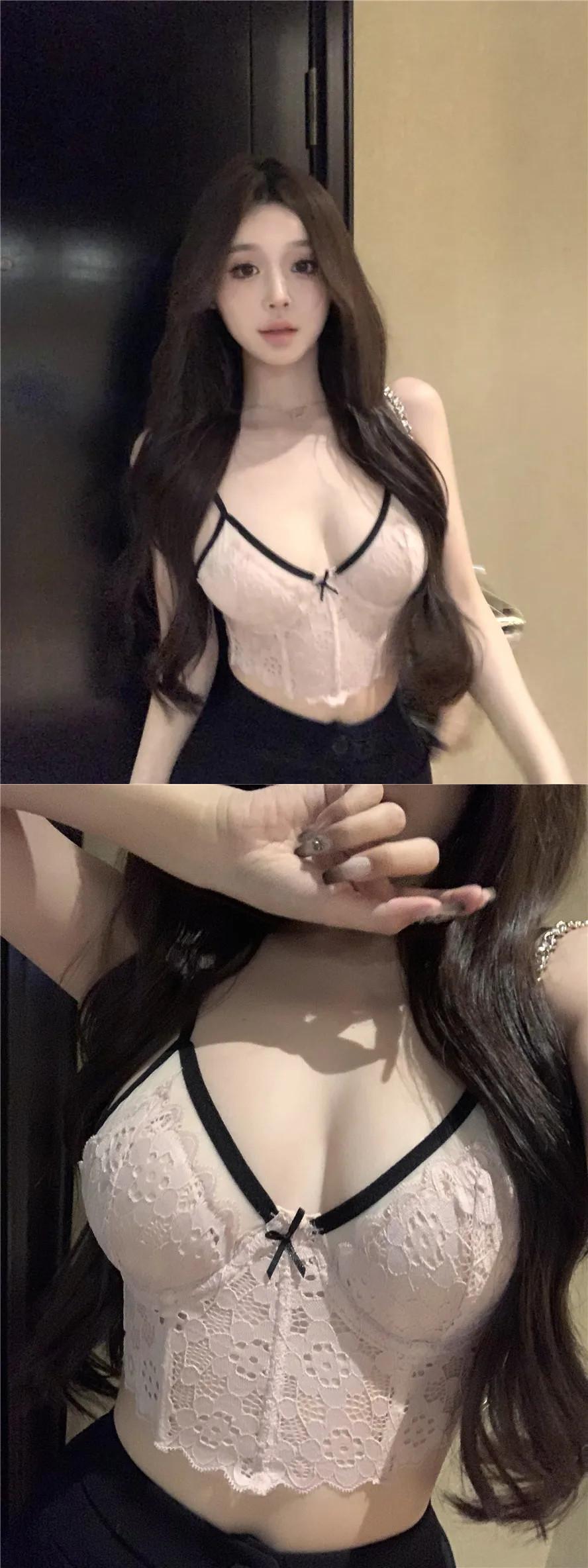 甘いホットガール純粋セクシーレースストラップベスト春スリムフィット V ネック魚骨ショートキャミソールトップ 大人ガーリー スウィート キュート カジュアル スプリング 春物 Vネック ピュア
